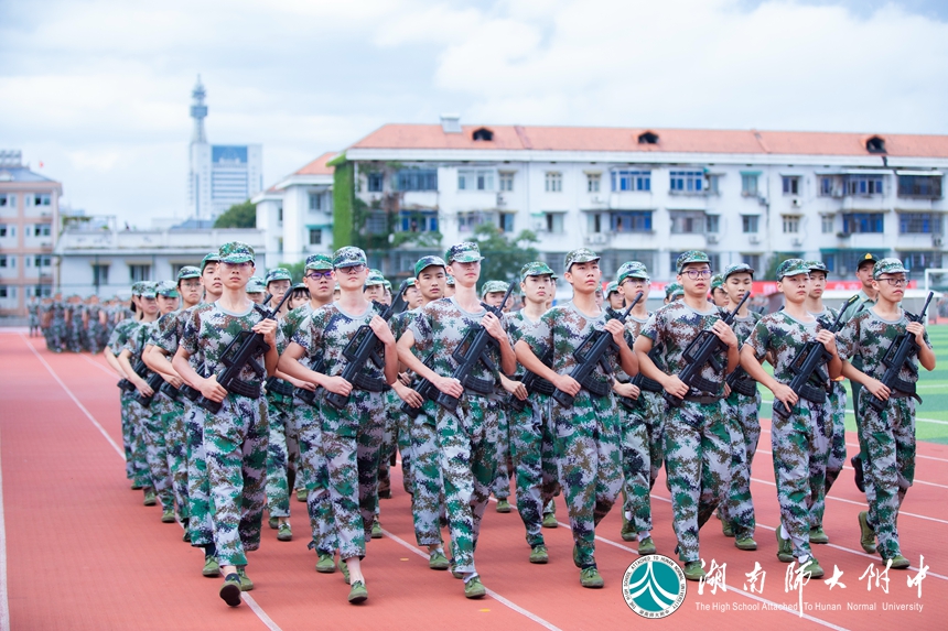 在庄严的国歌声、激昂的校歌声中,国旗、校旗冉冉升起,大会正式拉开帷幕。我校2020级1100多名高一新生和110多名七年级新生组成的二十五个方队沿着田径场红色跑道依次列队入场。谢永红检阅了学生连队。整齐划一的方阵队列、激情澎湃的军训口号以及刚劲有力的摆臂踢腿赢得了观礼台上各位领导、嘉宾、师生和家长的阵阵掌声。