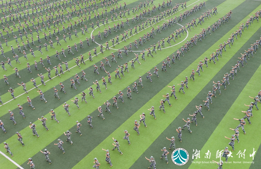 随后,全体2020级新同学依次进行了静态动作展示和军体拳展示。新生们动作精练、激情高昂,既展现出了新一代附中人严明的组织纪律性,又彰显着附中学子自强不息、追求卓越的精神风貌。