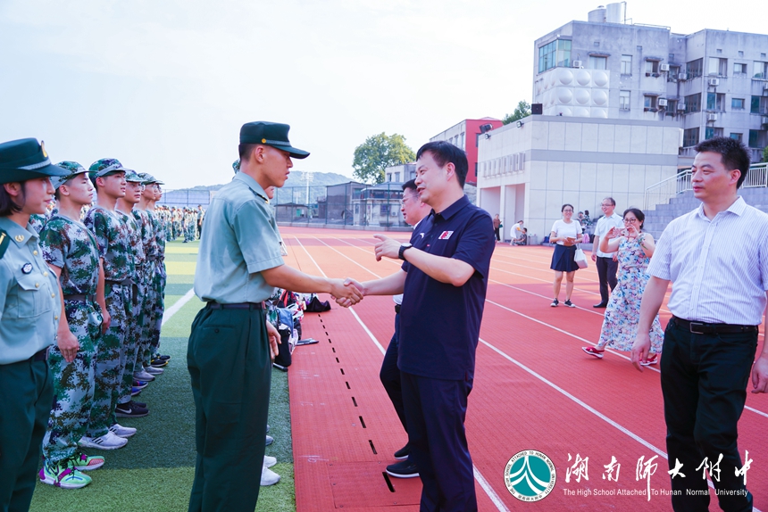 谢永红希望师生们通过军训,锻炼身体,磨砺意志,锻造过硬的作风,形成坚强的集体,开启新的生活,展示附中风采。他同时强调附中学子要有斗志、有气势、要以更好的精神面貌来克服军训期间天气炎热和身体疲惫的困难。