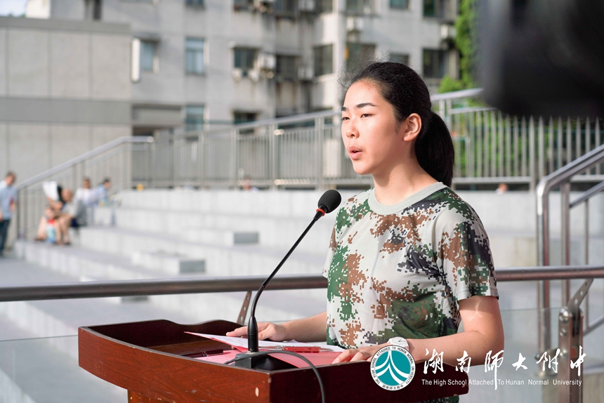高一年级学生代表王畅帆同学发言,代表高一新生们向领导、教官、老师做出严于律己、吃苦耐劳的承诺。