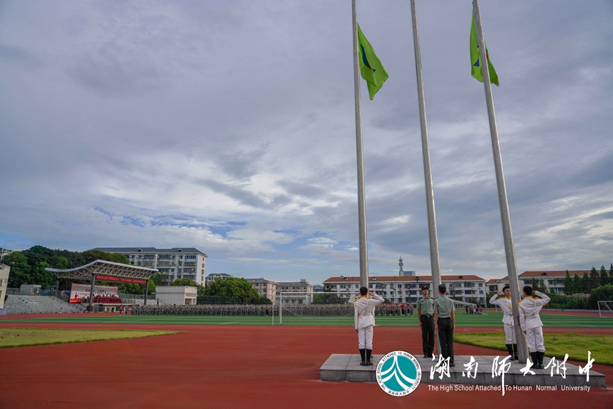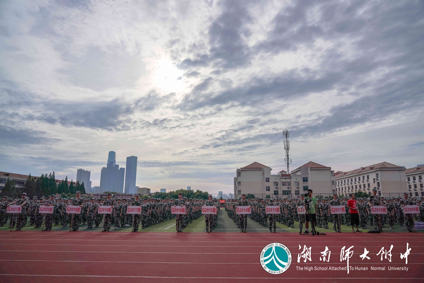 苏建祥作军训动员讲话。他说,与近年不同的是,除高一新同学外,今年还有七年级新同学参加军训,这是我校自2006年停招初中学生以来,恢复初中招生的首届同学。随后,他从国防教育、素质教育、教学改革等方面阐述了学生参加军训的重要意义。今年,教育部和中央军委训练管理部在全国范围联合遴选“国防特色教育示范学校”,积极探索形成“军地合作、军民融合、院校联建”的国防特色教育模式。示范学校建设是深入贯彻习近平强军思想、落实军民融合发展战略的创新实践,我校与国防科技大学作为全国首批、湖南省唯一结队的学校入选,可喜可贺!这是上级部门对我校长期以来在国防教育方面取得成绩的充分肯定,也是对我校未来更有效开展好国防教育的殷切期盼!本次军训,所有教官都由国防科技大学派驻,我校国防特色教育焕发新气象、开启新征程。最后,苏建祥对全体参训同学提出四点要求:疫情防控,抓细抓实;服从命令,严格要求;刻苦训练,磨砺品质;相互尊重,团结共进。