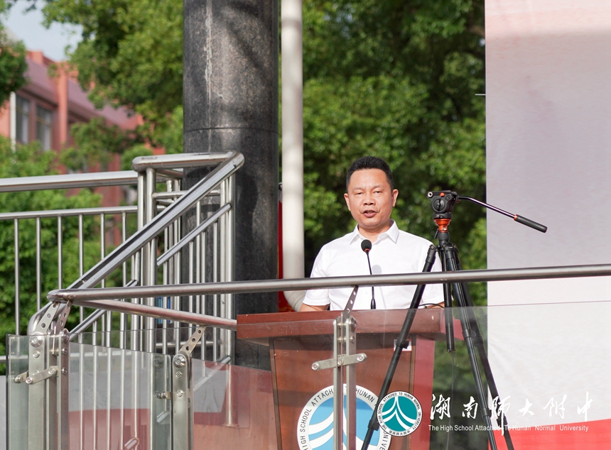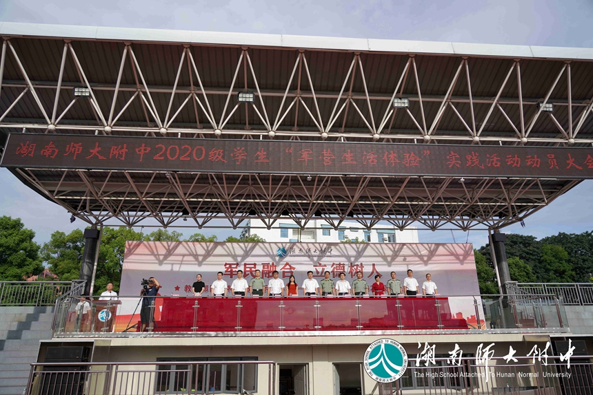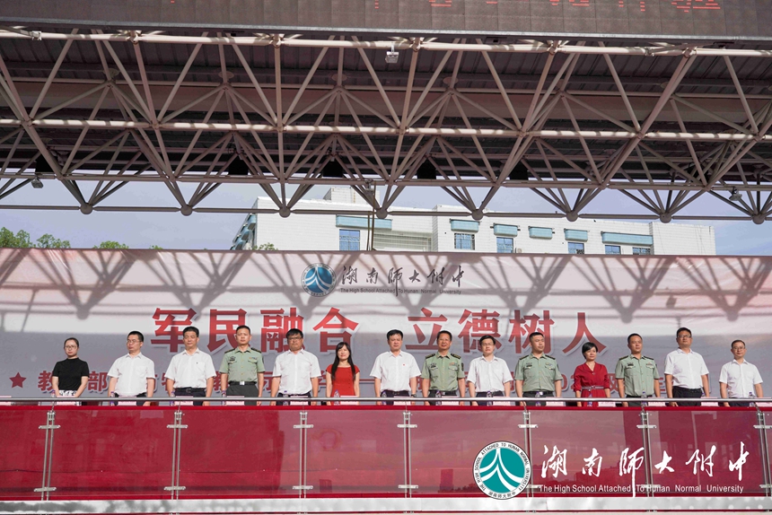 长沙市教育局学生处处长廖学文,国防科技大学教务处副处长汪诗林,军事基础教育学院学员一大队政委崔小健、一大队二队政治教导员郑茂森、一大队六队政治教导员高兴亮,湖南师大附中校长谢永红,党委副书记彭荣宏,副校长、工会主席陈迪勋,纪检书记李春莲,副校长苏建祥、蔡任湘,挂职副校长杜军在主席台就坐。仪式由德育与学生发展处副主任张磊主持。