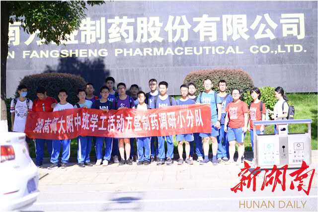 “通过暑假实践,回应孩子们的成长诉求,帮助他们找到最适合自己的道路。”张添老师所指导的调研小分队来到了长沙高新区的湖南方盛制药股份有限公司,该公司是一家集综合性科研型医药健康产业集团,其研发的品牌系列产品广泛应用于心脑血管、儿科、骨科、抗感染等各医学领域,今年荣获“湖南省疫情防控突出贡献企业”。