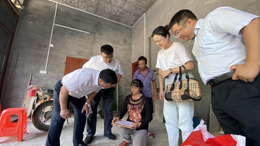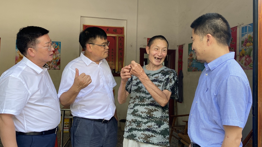 走进学校援建的苏进雄新家,身为聋哑人的苏进雄爱人苏玉凤高兴地挥动双手,见到熟悉的黄月初书记和陈迪勋副校长,激动地用哑语告诉大家新家的装修计划,表达对美好生活的憧憬,并不停竖起大拇指对学校的帮扶表示感谢。黄月初送上了慰问金和慰问物资,对苏玉凤积极乐观的心态表示欣慰,鼓励她好好生活,带领全家早日实现小康。