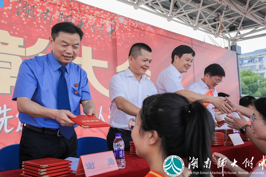 校长谢永红,党委书记黄月初,党委副书记彭荣宏,副校长兼工会主席陈迪勋,副校长苏建祥、蔡任湘、杜军(挂职),党委委员、校长助理廖强,党委委员、校长助理陈胸怀等校领导,法治副校长谢勇,洪山集团执行董事高开发,校友冯国强,校家委会副主任刘红荣等嘉宾出席大会并担任颁奖嘉宾。全体教职工,高一、高二年级学生参加大会。大会由团委书记李钊和1825班学生李诗绪主持。