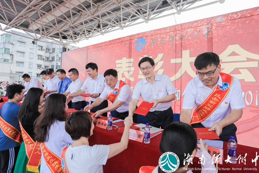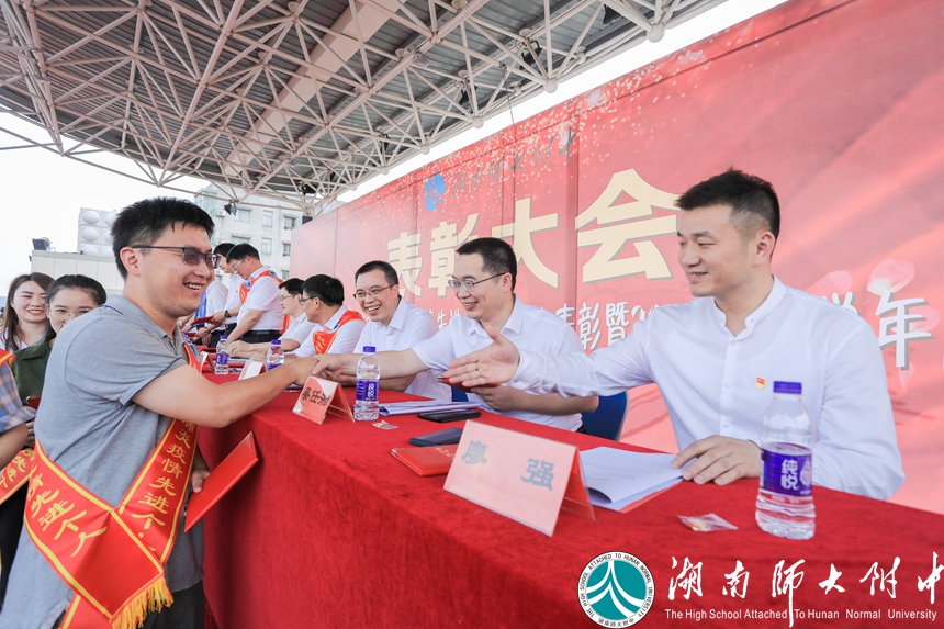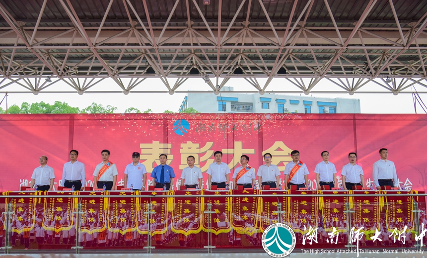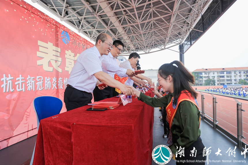 5月27日下午4点,沉默了几个月的田径场,终于再一次国歌嘹亮,高一高二全体同学和全校教师,复学以来第一次聚集在青翠可人的草皮上——湖南师大附中2020年抗击新冠肺炎疫情先进集体和个人表彰大会在这里隆重举行。学校党委、行政决定,对在学校疫情防控工作中表现突出的15个先进集体及150名先进个人予以表彰。
