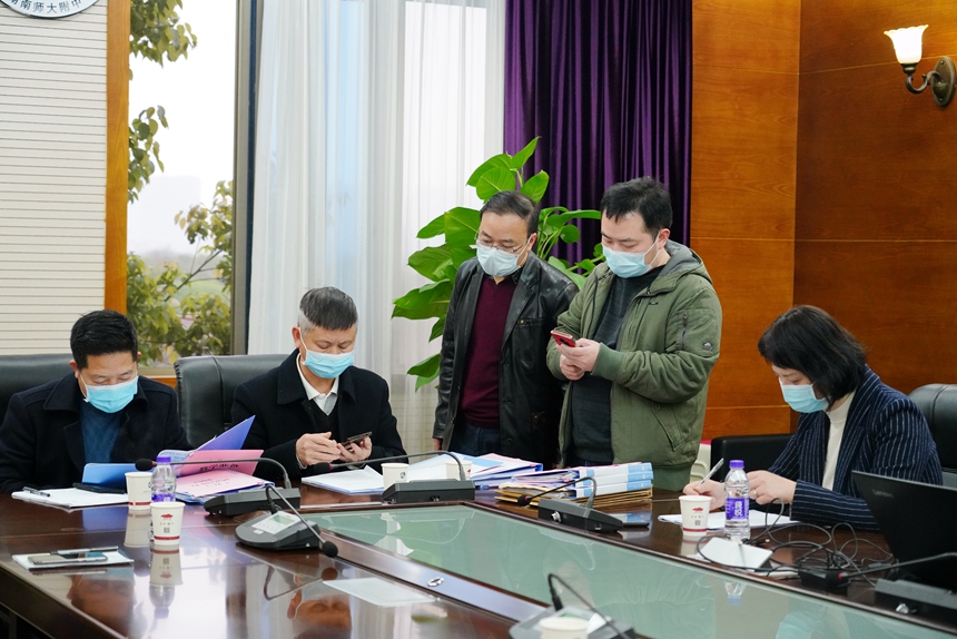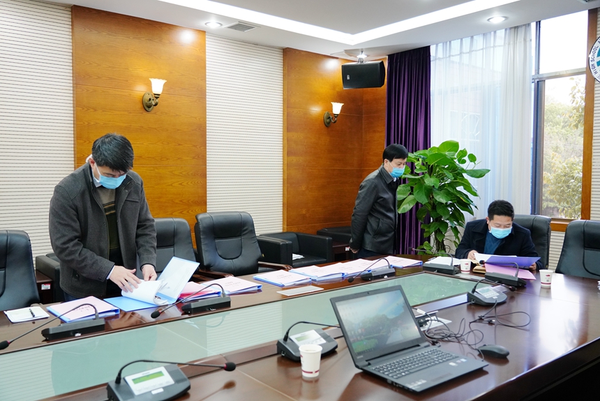 在校史馆会议室,副校长苏建祥、陈迪勋围绕师生情况排查、重点人员管控、线上教学开展、防控物资储备、复学准备、宣传教育等各项工作做了汇报。