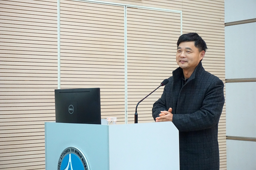 12日上午,培训进入“发展论坛”板块。论坛由党委书记黄月初主持,分现身说法、专家引领、幸福分享等三大单元。学术委员会主任何宗罗作了《做研究型教师》的典型发言。他结合自己的成长经历,阐说了研究型教师的内涵与要求,重点例说了研究型教师成长的九条途径与策略,号召教职工悦纳现实、欣赏自己、心存感激、追求卓越。湖南师范大学教育科学学院院长、湖南省“十三五”教育科学研究基地指导专家刘铁芳教授作了《做一名幸福的人民教师》的专题讲座。他强调了精神引领的重要性,号召广大教师注重身心修养,追求“全人发展”。他倡导教师们千万要健康、一定要和谐、尽力去充实、努力求安宁,在立德树人的大背景下找准教师幸福成长方向。最后,王心怡、邓云浩、周彦、李鹏程等老师分享了法国访问研学、加拿大短期研修、南京和深圳名校考察学习等基本情况和心得体会。