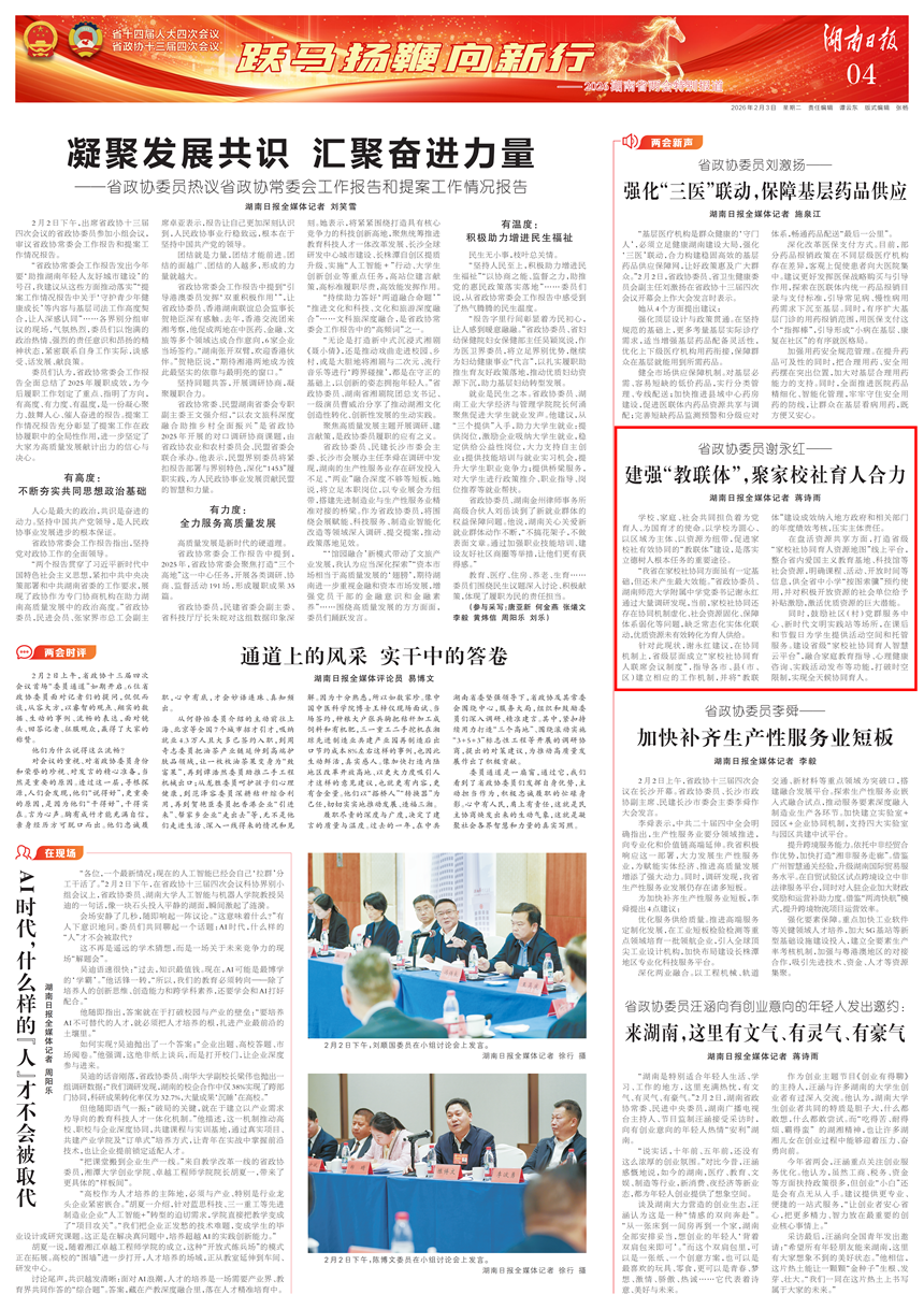 【湖南日报】两会新声丨省政协委员谢永红:建强“教联体”,聚家校社育人合力