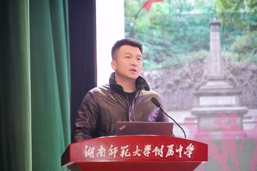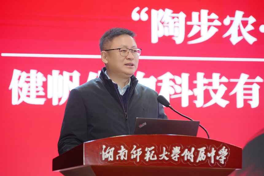杰出校友、健帆生物科技有限公司董事长董凡满怀敬意地回忆起语文老师陶步农的谆谆教诲与温润品格,这正是他设立 “陶步农・健帆” 奖、纪念恩师延续教育火种的初心;同时回溯了附中宽松包容的求学时光,强调语文学科作为文化传承载体、培养思辨能力与人文情怀根基的核心价值,呼吁师生重视母语学习。面对 AI 时代信息爆炸的现状,他特别提出教育要锚定“立德树人”的根本目标,寄语老师们与时代同进步,在技术迭代中守住育人初心。