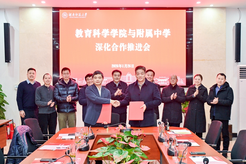 沈又红强调,高等教育与基础教育协同发展是落实教育强国、教育强省战略的重要举措,教科院与附中的深化合作,既是发挥校内优质资源互补优势的内在需求,也是打造校地协同育人标杆的生动实践。他希望双方以备忘录为遵循,压实合作责任、细化实施方案,在师范生实践基地建设、青年教师联合培养、重大科研课题共研等方面取得实质性成果,形成可复制、可推广的合作模式,为湖南教育事业高质量发展贡献师大力量。