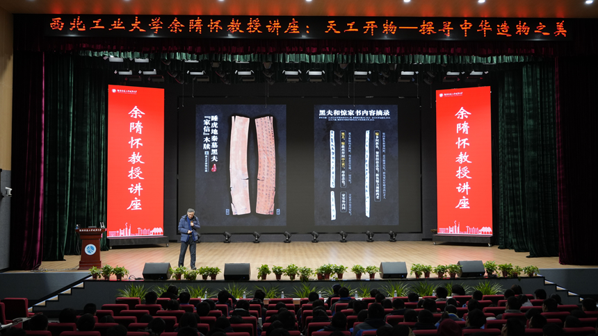 1月23日下午,西北工业大学教授、博士生导师余隋怀应邀来到我校大泽湖校区,在孟其大礼堂作了题为《天工开物——探寻中华文化造物之美》专题讲座,带领师生展开一场从史前至唐代的造物文明巡礼。副校长陈胸怀主持本次讲座。