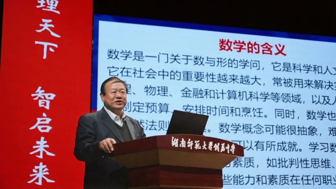 当日下午,大泽湖校区孟其大礼堂座无虚席,张继平院士以《数学的品质》为题开讲。他从数字本质切入,溯源数学发展,串联多元知识阐释其推动科学革命的核心价值,以 “鸟类数觉” 趣味案例化解抽象原理。谈及 AI 对教育的变革,张院士分享 “创新、诚信、坚韧” 的科研信念,勉励学子 “以兴趣为引,以坚持为基”。互动环节中,针对高考数学题型调整问题,他指出改革是评价优化的体现,呼吁拓宽人才选拔渠道,引发共鸣。