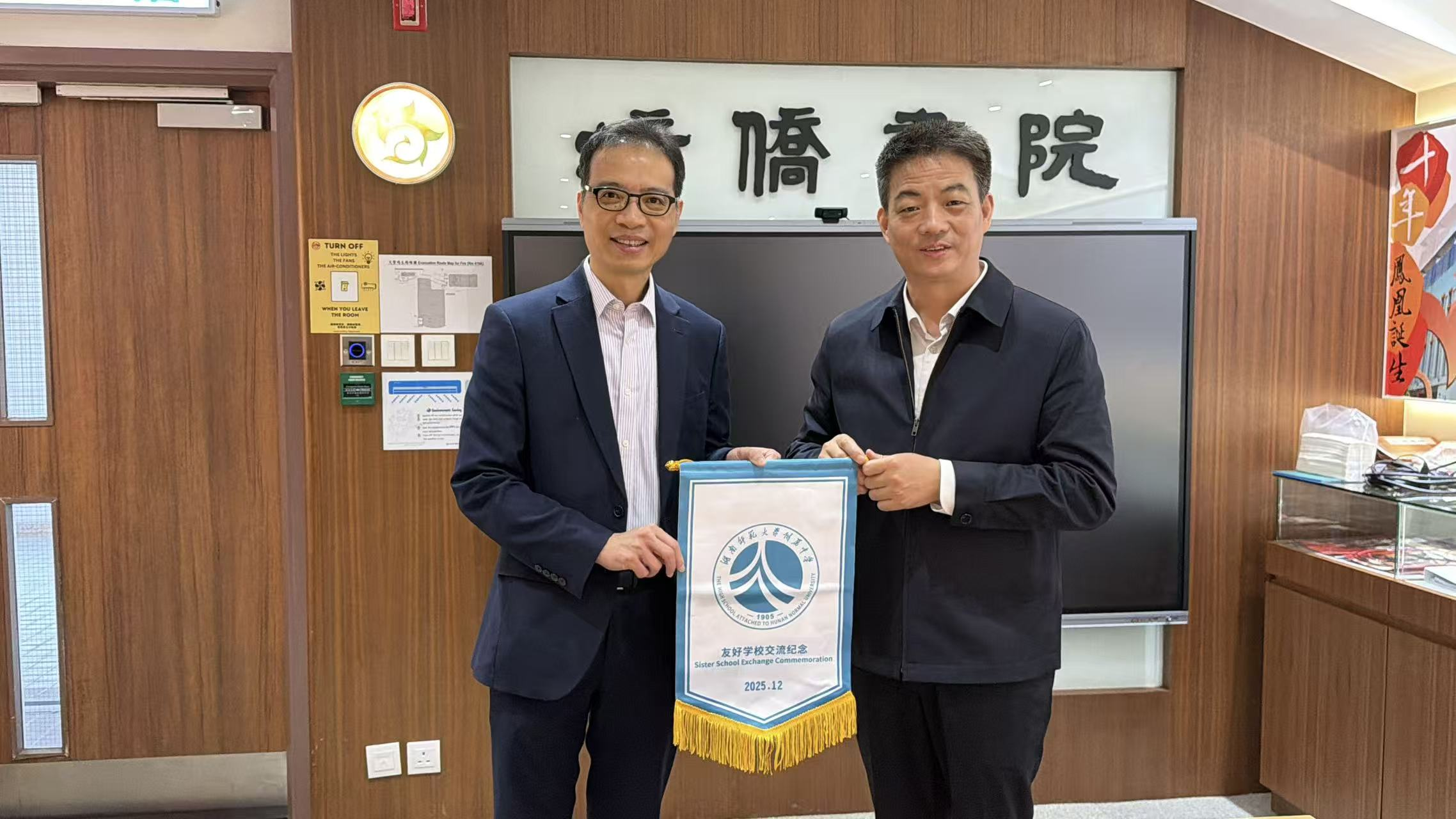 12月13日上午,应香港培侨书院邀请,我校校长苏建祥、校友会秘书长谭伟赴港进行考察交流。自去年两校缔结为友好学校以来,双方合作日益紧密。此次访问旨在进一步深化湘港教育交流,共同探索拔尖创新人才培养的新模式。