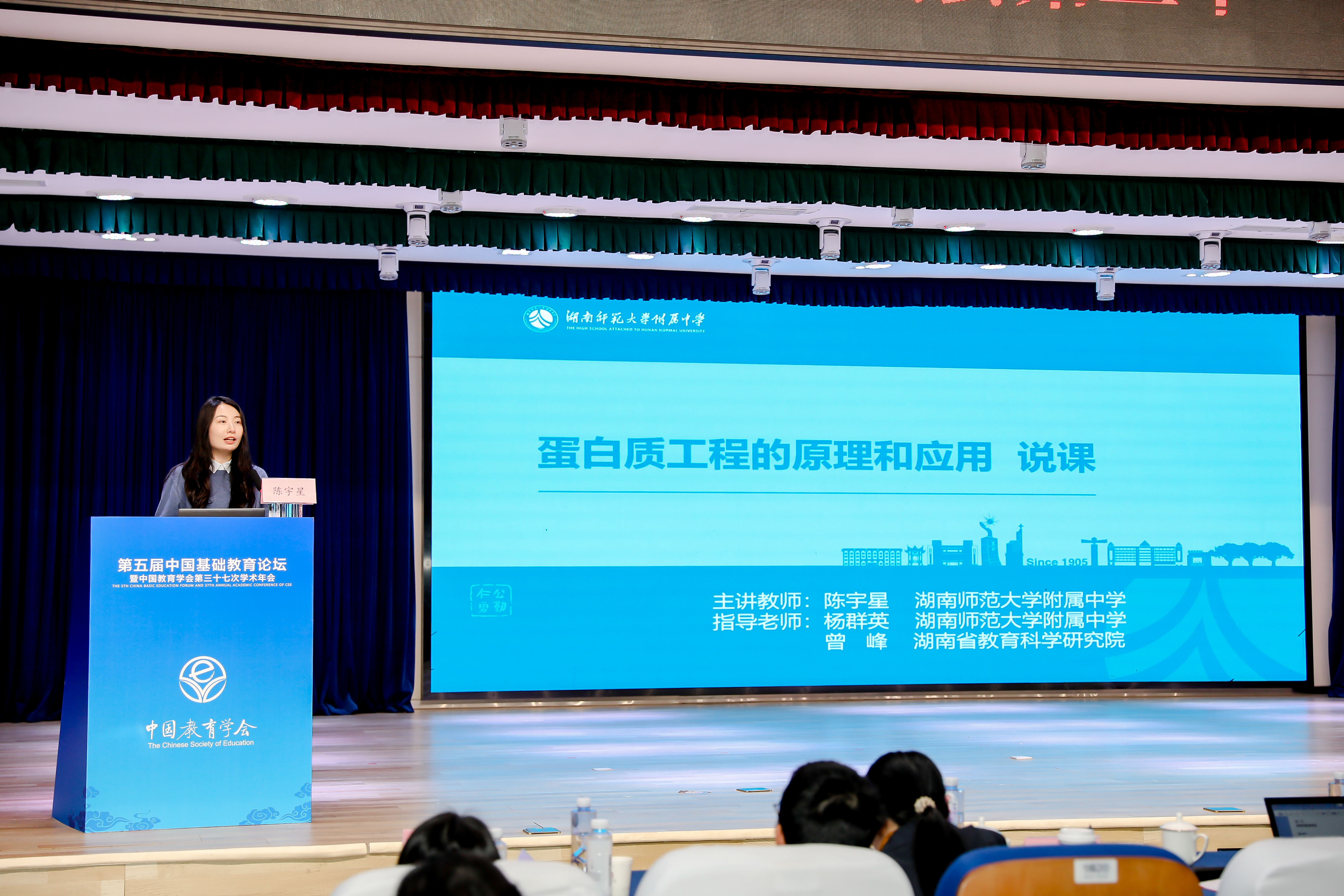 近日,第五届中国基础教育论坛暨中国教育学会第三十七次学术年会在四川天府新区举行,其生物学科分论坛同步于四川元音中学召开,论坛聚焦“在中学生物学教学中做好科学教育加法”主题。我校生物教师陈宇星凭借扎实的专业能力,成功入选中南六省唯一代表,在会上展示了《蛋白质工程的原理和应用 —— 以胰岛素类似物的研发为例》教学课例,其教学设计与现场说课收获全国教育同仁的高度评价。据悉,该课例经层层遴选脱颖而出,相关展示环节同步线上直播,累计吸引近 200 万教育工作者在线观看,引发行业广泛关注。我校生物教研组组长杨群英、副组长贺俊也一同参会,并与国内生物学教育领域权威专家围绕学科教学展开深度交流。