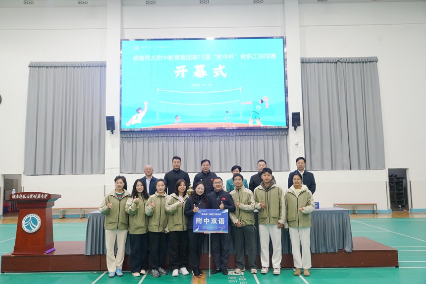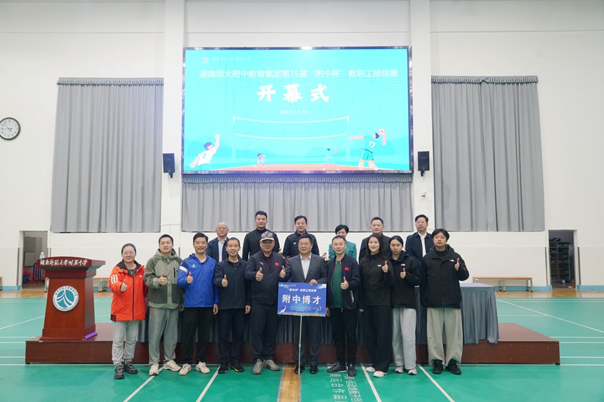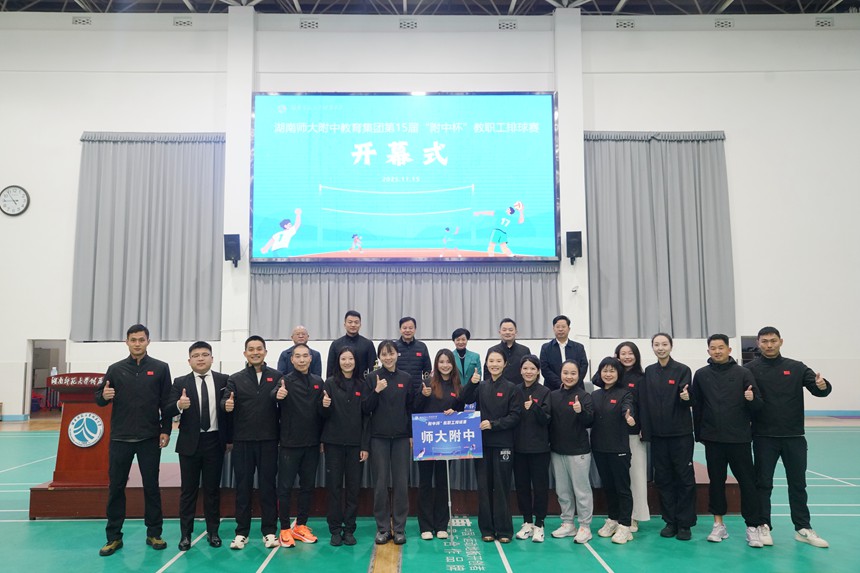 十五年坚守初心,十五届热血相约。11月15日上午,湖南师大附中教育集团第十五届“附中杯”教职工排球赛在桃子湖校区邦柱体育馆隆重开幕。集团各成员校、友好校的21支代表队齐聚一堂,共同开启这场凝聚着附中精神与体育激情的年度盛会。