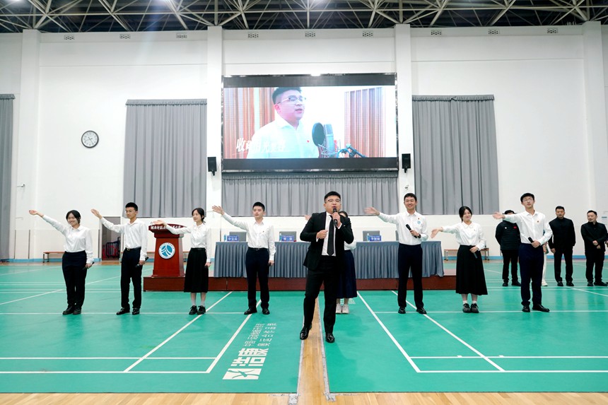 开幕式现场亮点纷呈,温情与激情交织。暖场表演环节,湖南师大附中领英团队带来原创歌曲《前路有我》,附中梅溪湖女团舞《青春飞扬》活力四射,瞬间点燃了全场热情。