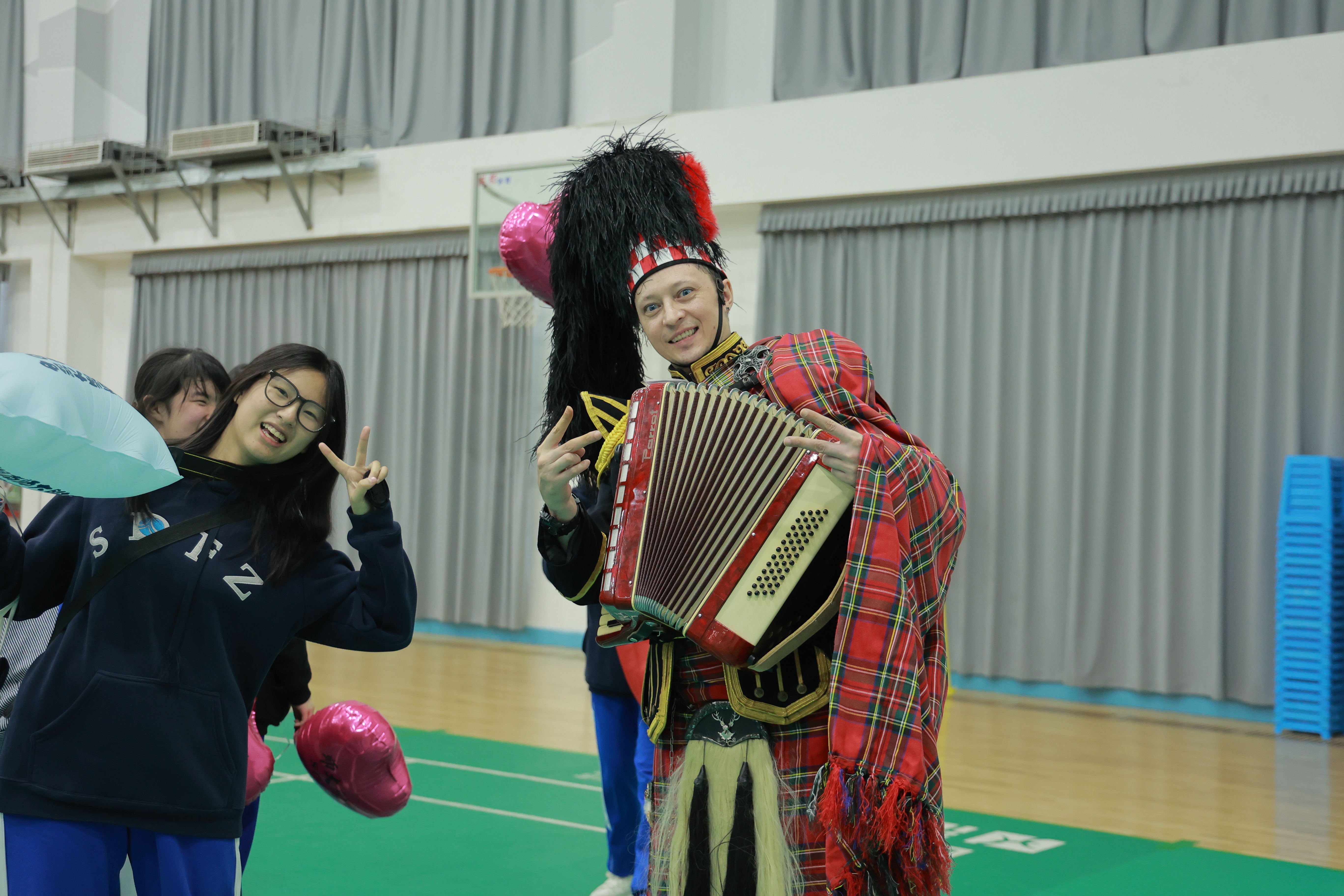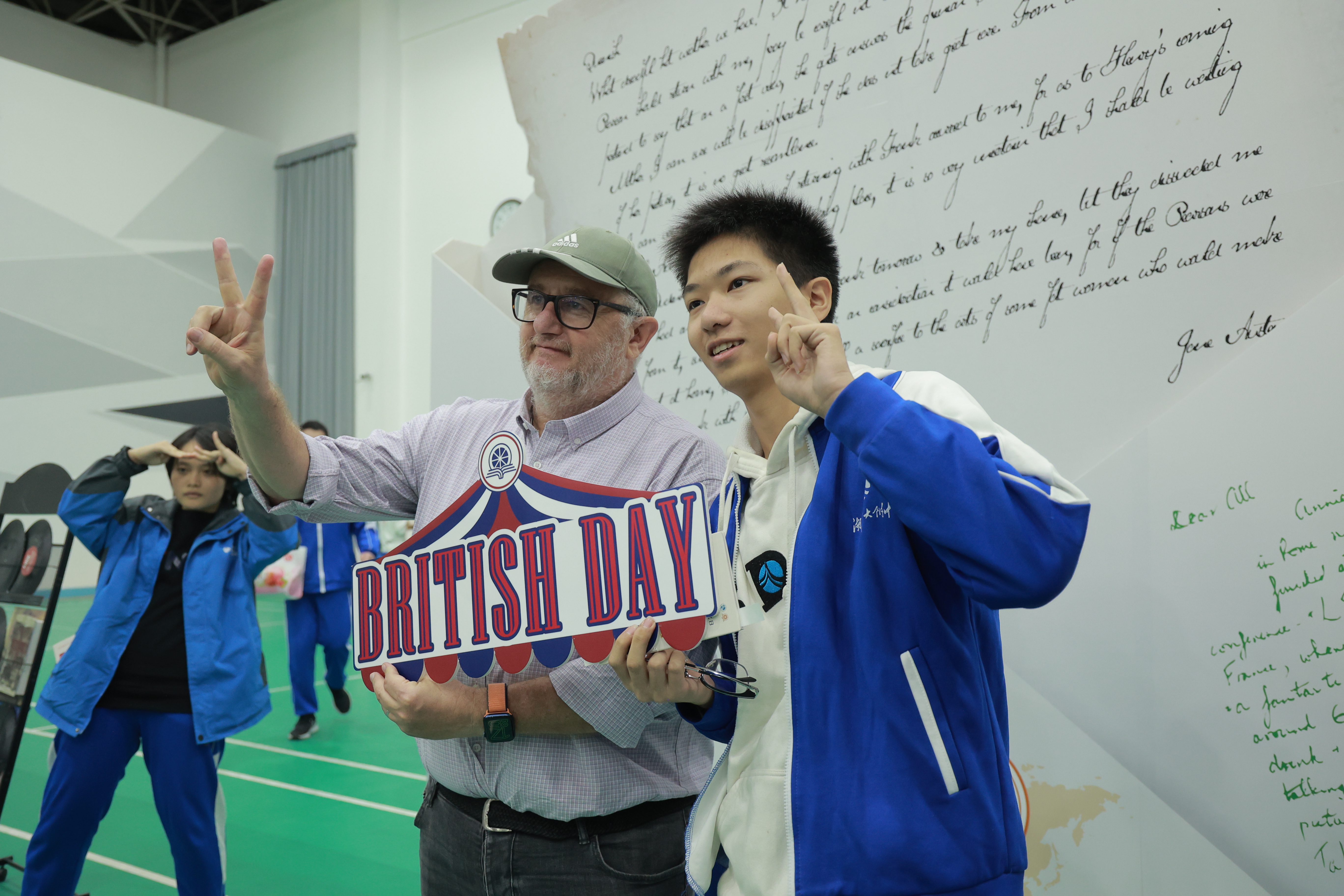 随后的互动体验环节在邦柱体育馆二楼举行,设有英国文化知识问答、哈利波特主题互动、英伦音乐挑战、足球体验及书信创作五大区域。现场伴随苏格兰风琴演奏,学生们在闯关活动中积极与外教交流,锻炼口语与应用能力。书信创作区备受瞩目,同学们为远在英国的朋友写下真挚问候,期待跨越山海的情谊。