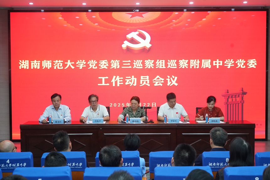 根据湖南师范大学党委关于巡察工作的统一部署,2025年9月22日下午,湖南师范大学党委第三巡察组巡察我校党委工作动员会召开。会上,湖南师范大学党委第三巡察组组长许杭平就即将开展的巡察工作作了讲话,湖南师范大学党委委员、纪委书记、省纪委监委驻校纪检监察组组长、党委巡察工作领导小组副组长姚春梅就配合做好巡察工作提出要求。 我校党委书记谢永红主持巡察进驻动员会并作表态讲话。