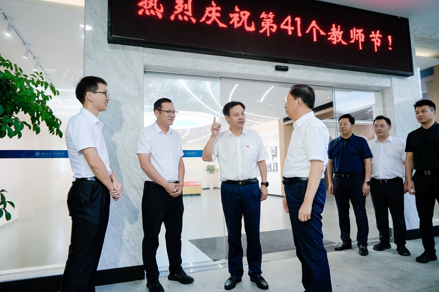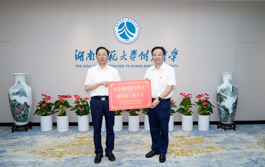 在第41个教师节来临之际,9月8日下午,长沙市委副书记、湖南湘江新区(长沙高新区)党工委书记、岳麓区委书记谭勇来我校走访慰问一线教师代表,代表湖南湘江新区党工委、管委会向我校教职员工致以节日祝贺和祝福。