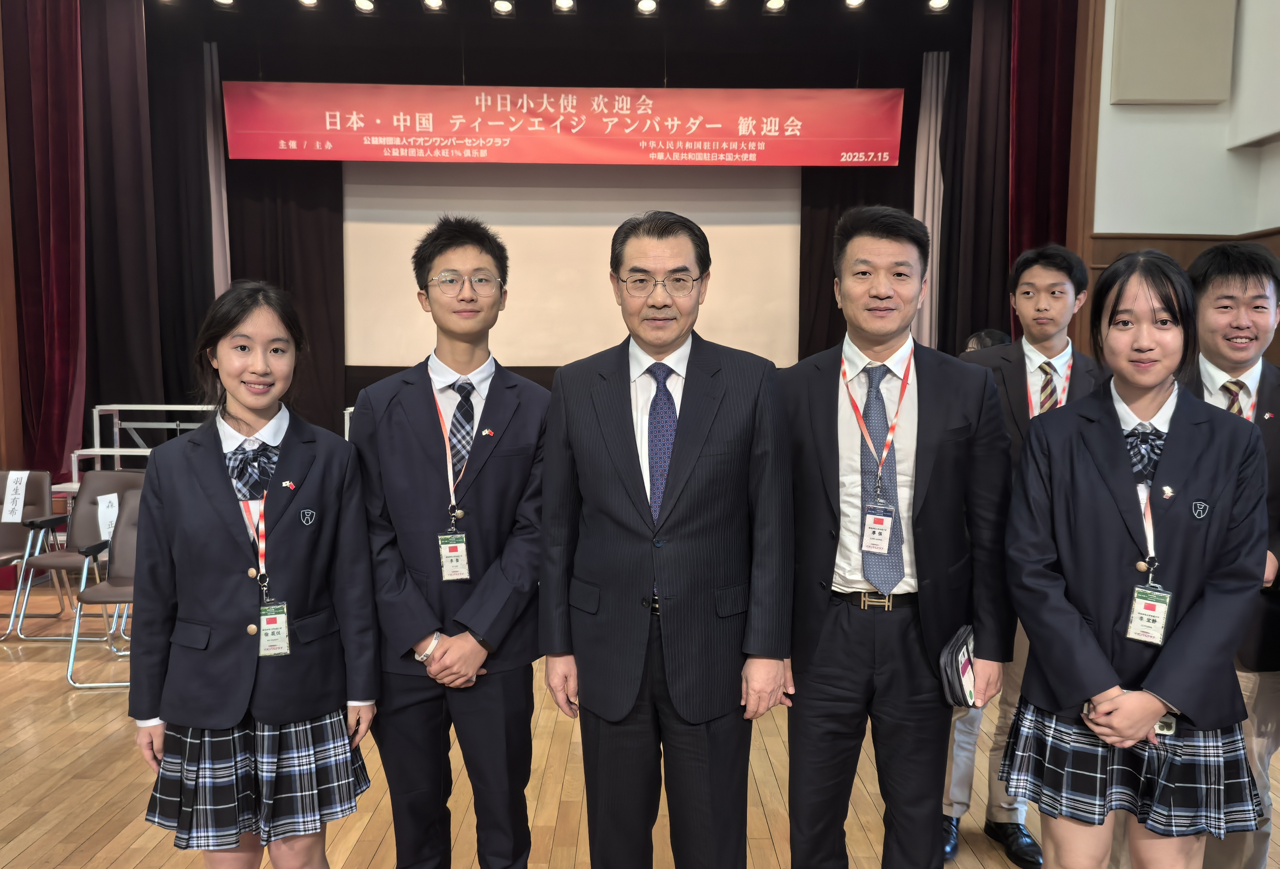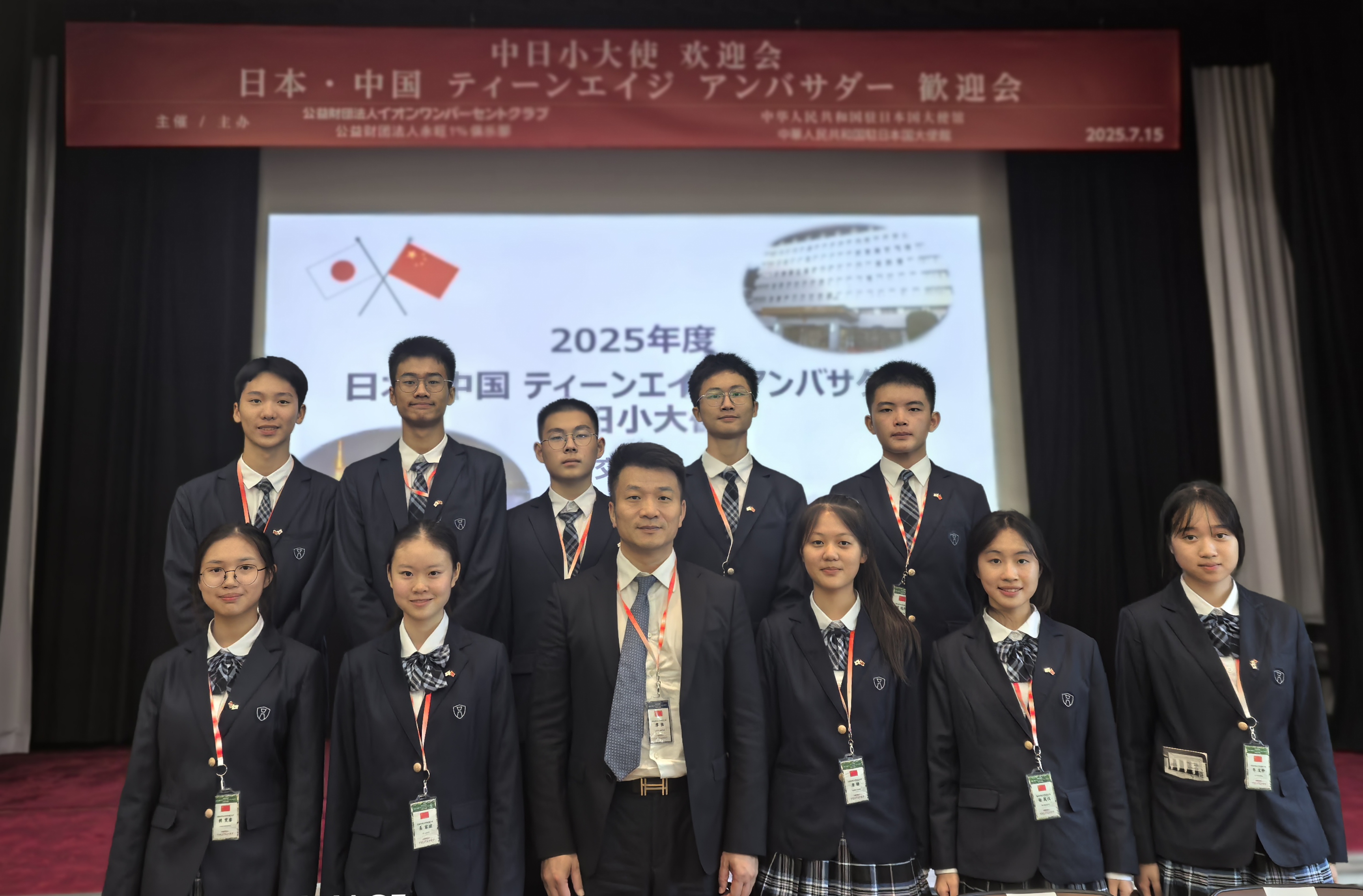 7 月 15 日,中国驻日本大使馆与日本永旺集团联合举办的 2025 年 “中日小大使” 欢迎会在东京举行。我校副校长廖强率师生代表参与此次活动,与来自中日两国多地的 80 名高中生 “小大使” 及各界代表共约 150 人,共同推动青少年友好交流事业。