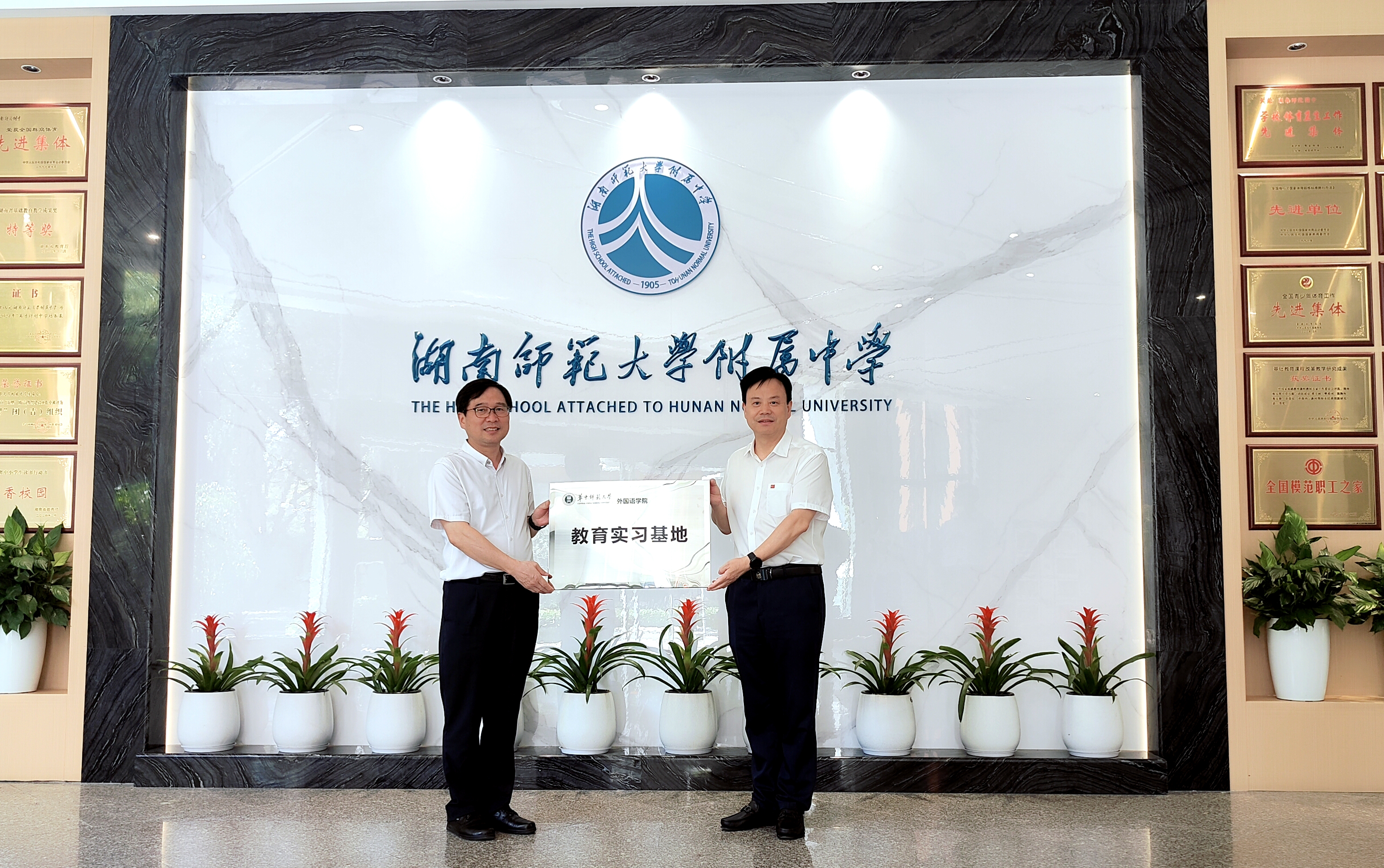 仪式上,任友洲代表华中师范大学向我校授予“教育实习基地”牌匾,充分肯定我校在师资培养与教育实践领域的贡献。双方领导共同为“华中师范大学-湖南师大附中共建阅览室”揭牌。该阅览室由两校联合打造,将依托华中师范大学《中学生英语》等学术资源,拓展学生阅读视野。