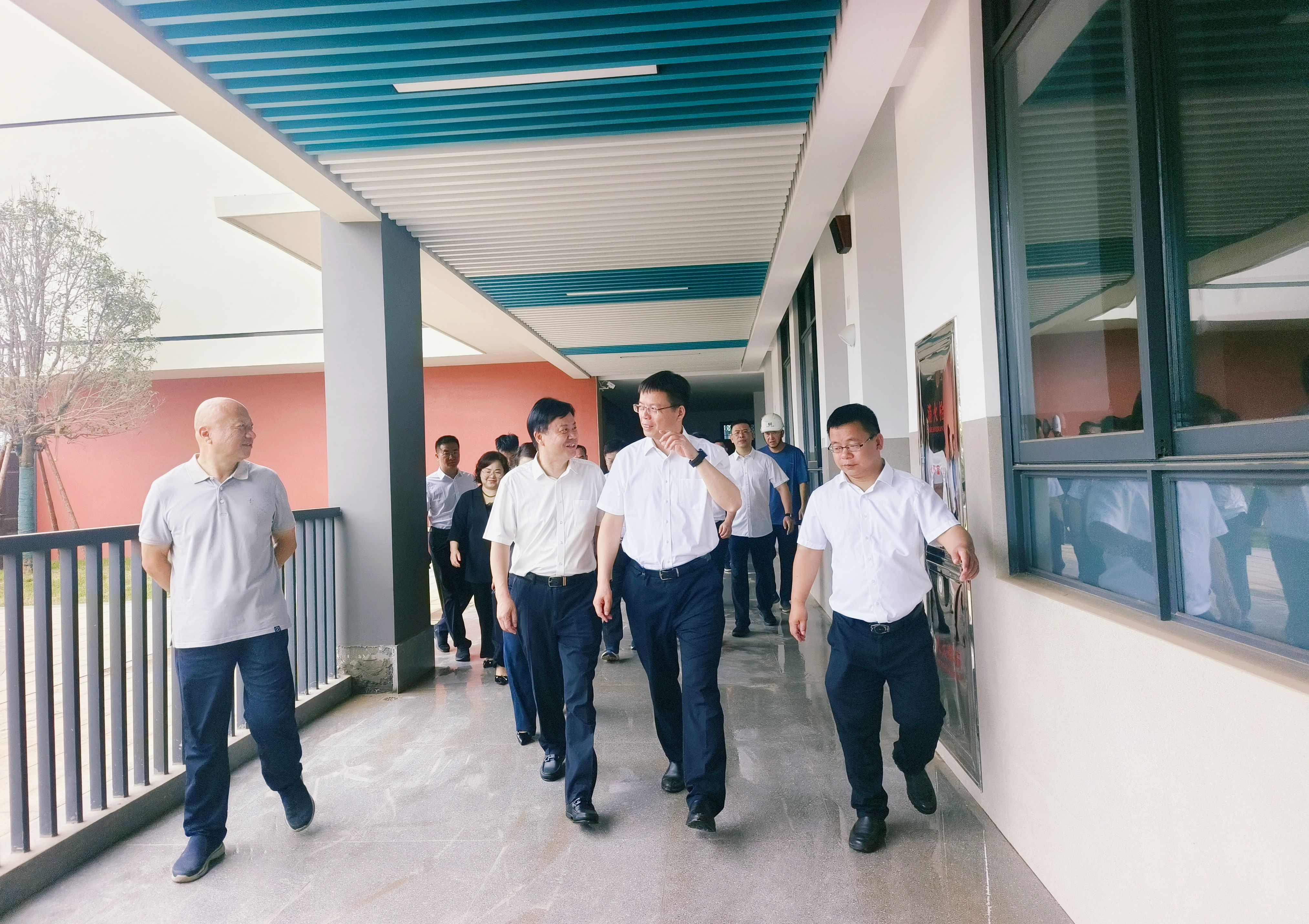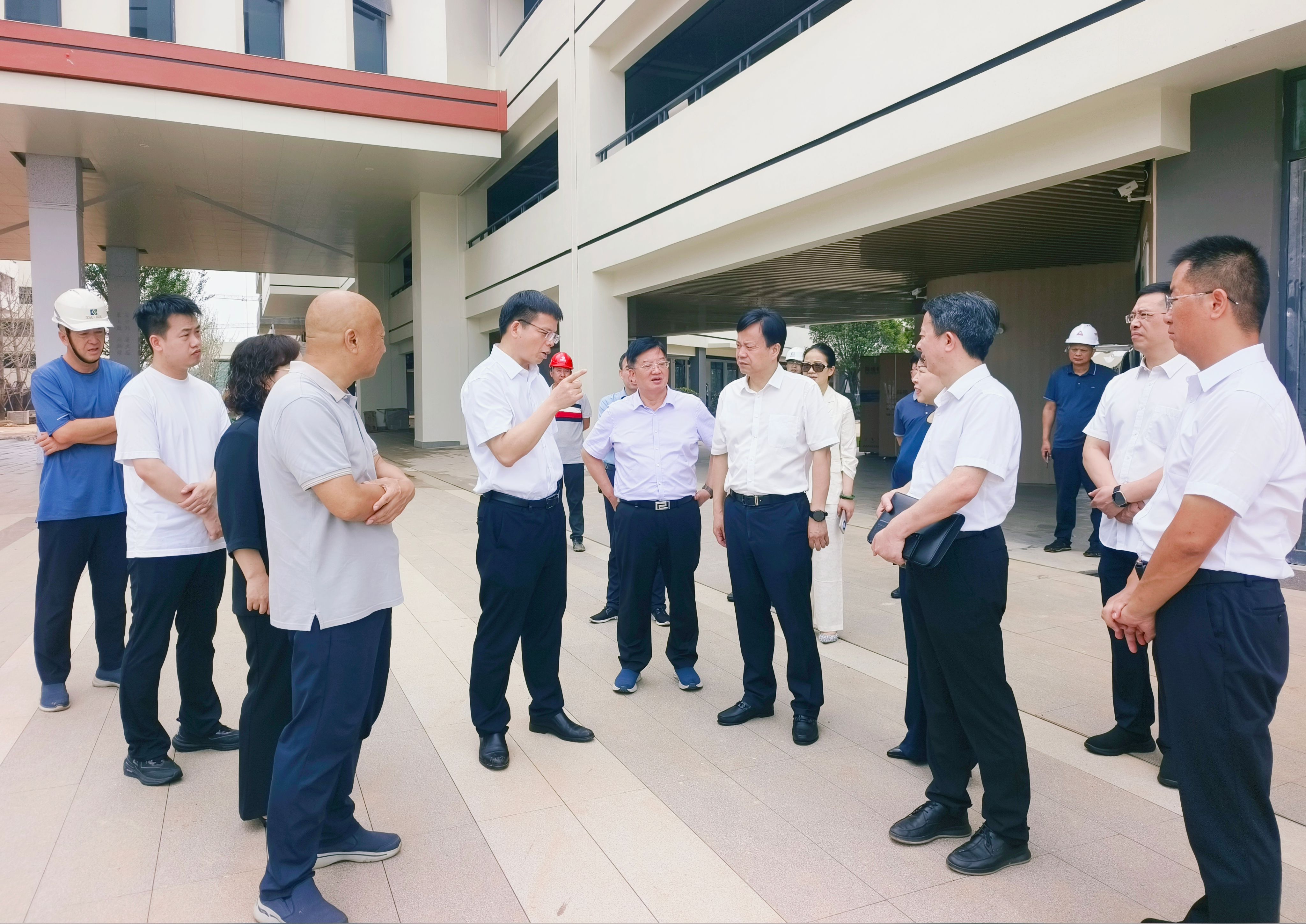 周志凯一行深入大泽湖校区施工现场,实地察看了教学楼、奥赛科教综合楼、体育馆等主体建筑,详细了解工程进度、设施配置及开学准备情况。在听取望城城发集团项目负责人汇报后,周志凯对新校区高标准、高效率的建设成效表示肯定,要求务必确保今年秋季顺利开学。