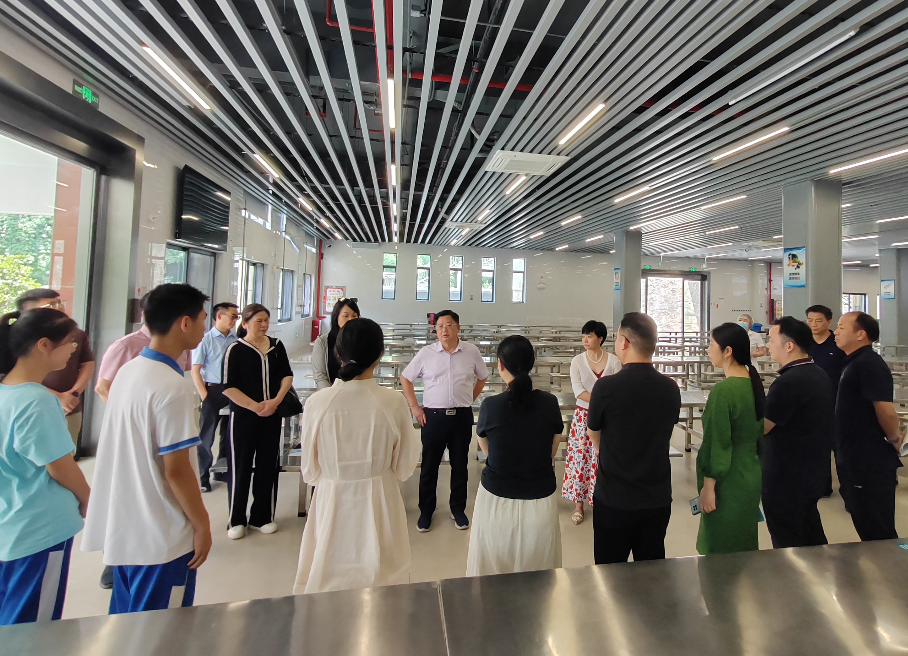 全体人员实地查看食堂操作间、就餐区、食材储存等区域,重点检查卫生状况、设备运行及食品安全管理流程。李智敏边陪同巡视检查,边介绍学校食堂运营情况,分析师生反馈的菜品多样性、制作流程、窗口效率等问题,食堂将深化“明厨亮灶”监督机制,升级一卡通系统,强化陪餐反馈闭环,以更高标准守护师生饮食安全与服务品质。