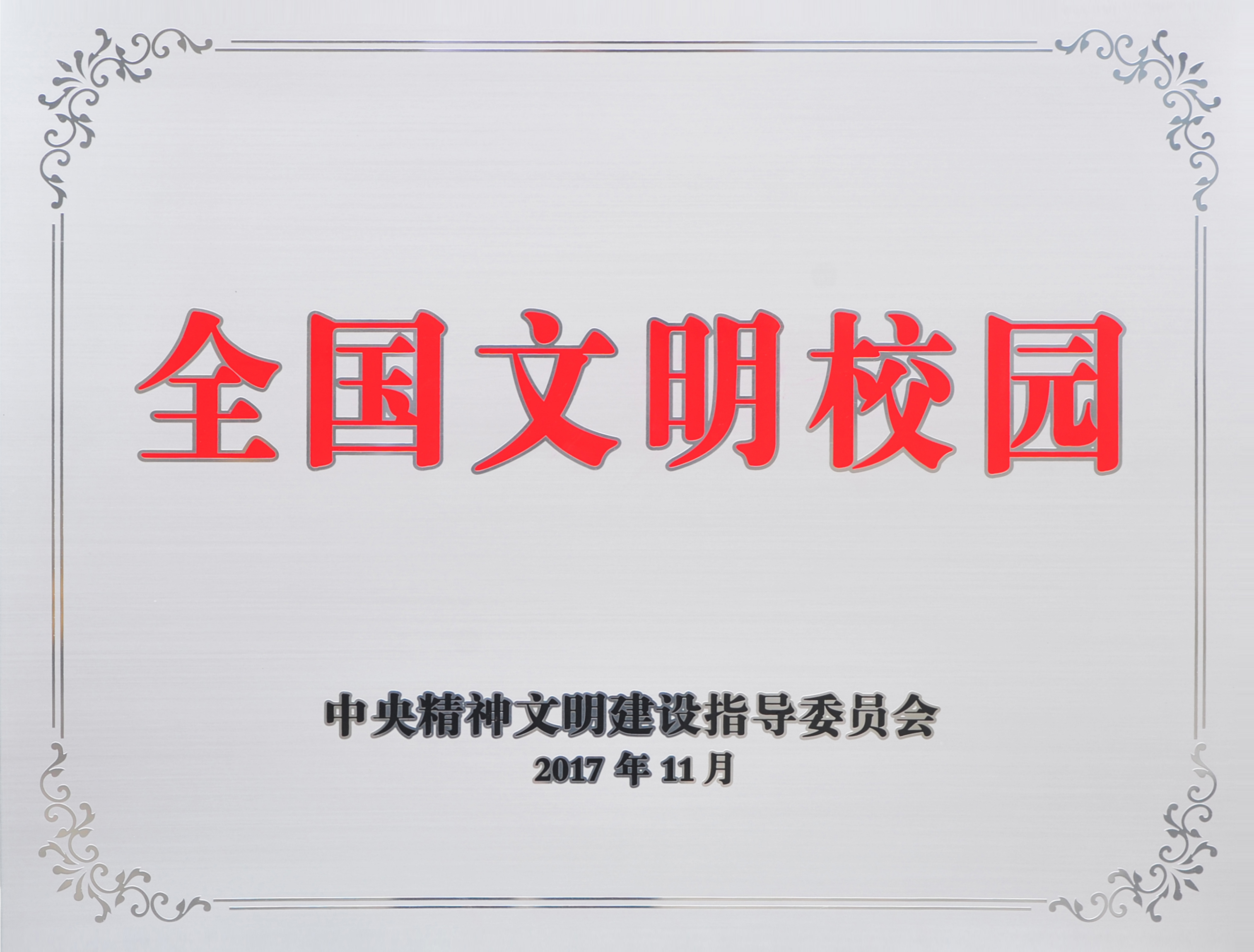 5月23日,全国精神文明建设表彰大会在北京举行,会上发布《中央宣传思想文化工作领导小组发布关于复查确认继续保留荣誉称号的全国文明城市、文明村镇、文明单位、文明家庭、文明校园的通报》,我校继续蝉联全国文明校园荣誉称号。这是我校继2017年获评首届全国文明校园后,第三次获此殊荣。