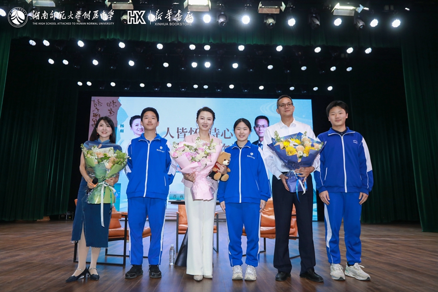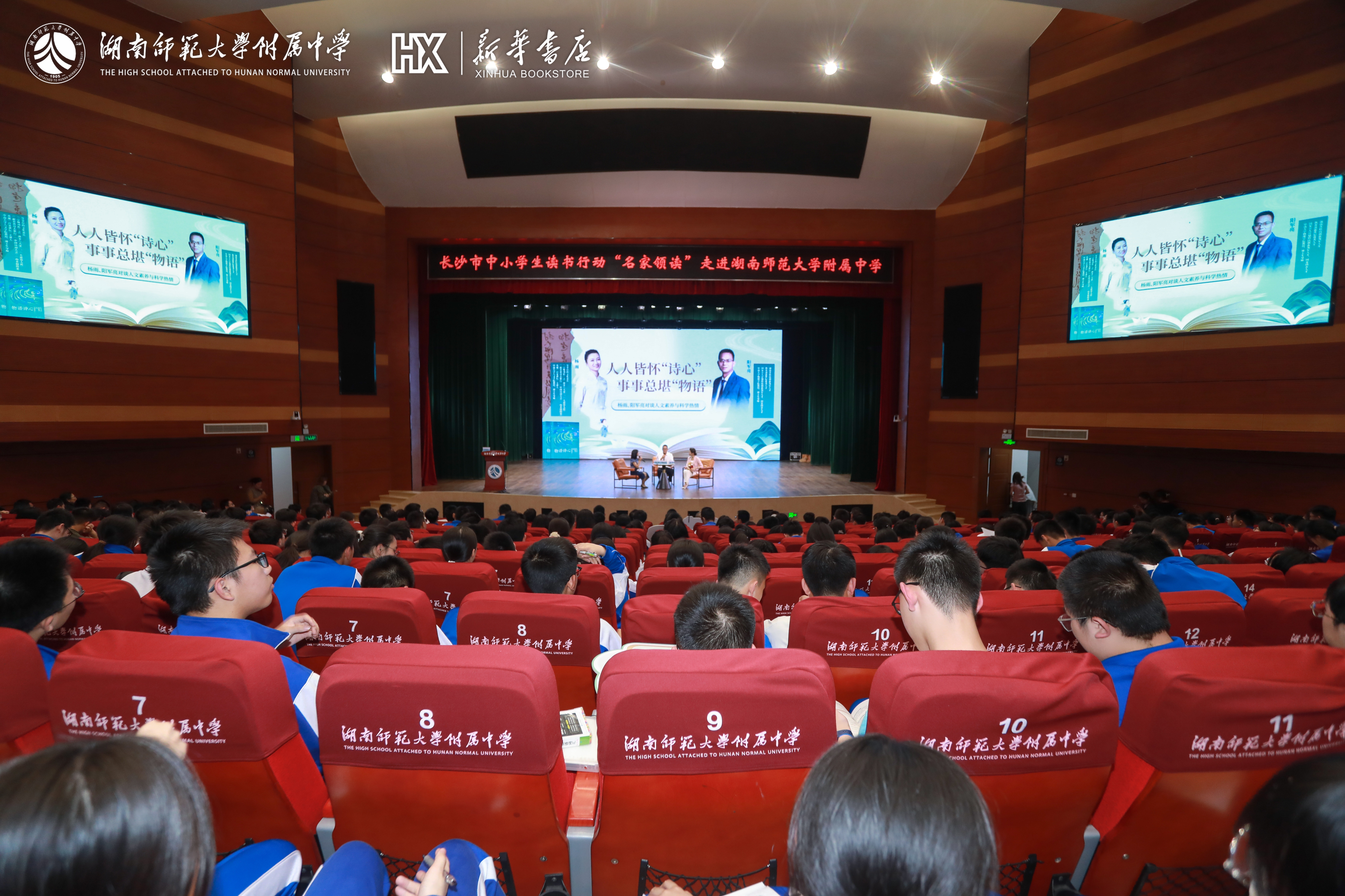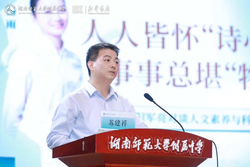 4月15日下午,由长沙市教育局主办,湖南师范大学附属中学、长沙市新华书店承办的长沙市中小学生读书行动“名家领读”第二期活动在我校举行。本次活动特邀中南大学人文学院杨雨教授与物理学院阳军亮教授进行主题为“人人皆怀‘诗心’,事事总堪‘物语'”的跨学科对谈,为在场1000多师生带来一场思想盛宴。