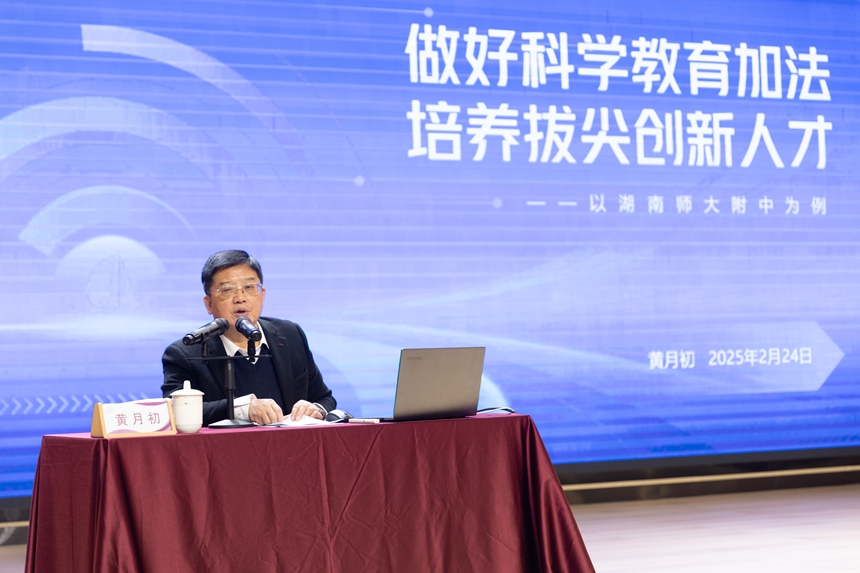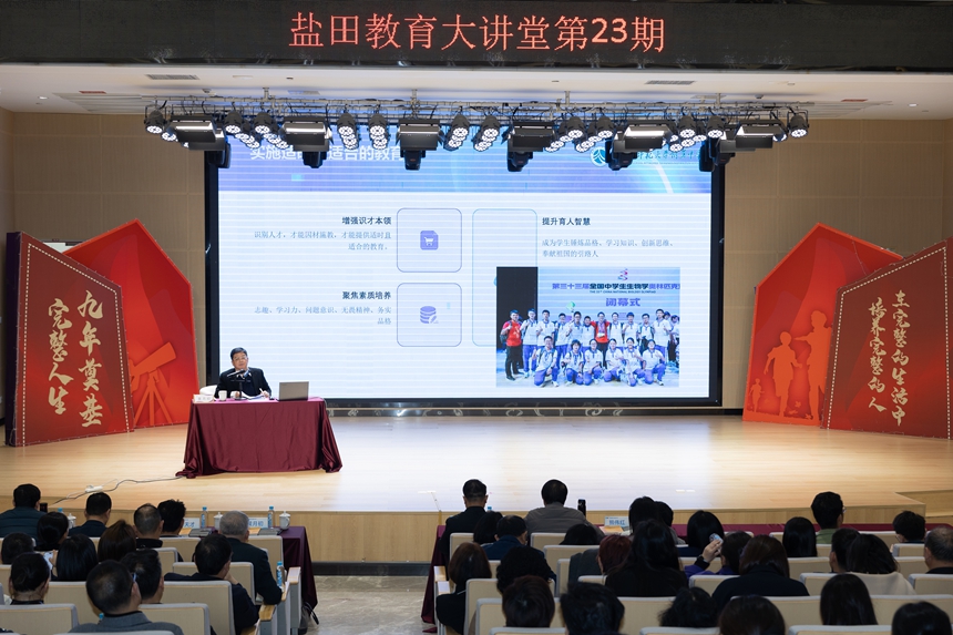 同期,盐田教育大讲堂在山海学校大礼堂开讲。黄月初校长以《中小学生科学教育理念与探索——以湖南师大附中为例》为题作专题报告,结合附中实践经验,为盐田区教育工作者分享了科学教育的创新路径,现场反响热烈。