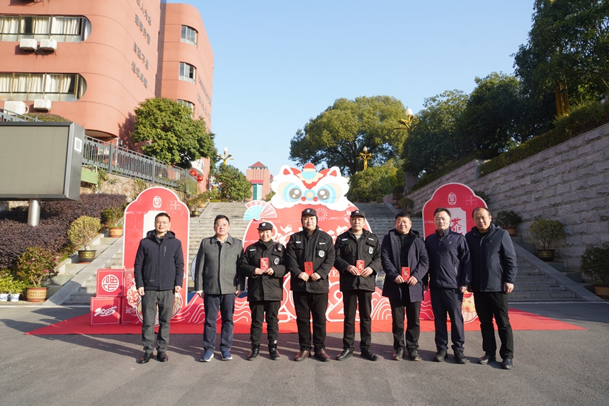 黄月初一行先后走访了校园安全监控中心、各校门值班岗位及后勤服务中心等。每到一处,他与坚守岗位的工作人员亲切交流,互致新春祝福,并详细询问了大家的身体健康状况及日常工作情况。他代表学校向每一位春节期间放弃与家人团聚机会,毅然选择坚守岗位、默默奉献的工作人员表示了最诚挚的感谢与崇高的敬意。黄月初指出,春节期间,正是有了大家的辛勤付出与无私奉献,才确保了校园的安全稳定与各项工作的顺利推进。他强调,全校各部门要进一步强化责任意识,坚决克服麻痹大意思想,确保春节期间校园环境的和谐安宁与各项服务保障工作的有序开展。同时,他也勉励大家继续发扬敬业奉献精神,为全校师生营造一个温馨、安全、祥和的节日氛围。