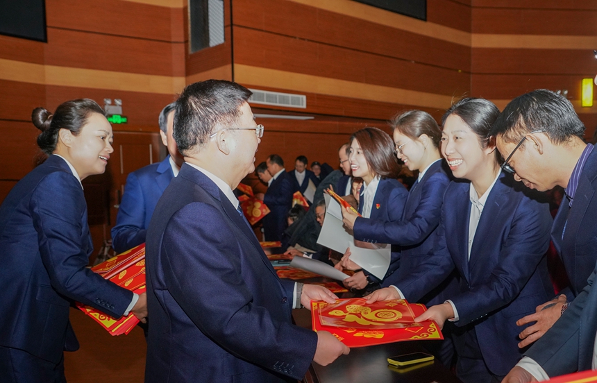 表彰结束后,纪检书记李春莲为大家做了新版校歌和120周年校庆LOGO解读。学校工会还进行了新年送福活动,所有赠送的“福”字均由我校李云虎老师亲自设计并印刷。李云虎老师以其独特的艺术视角和深厚的书法功底,将传统与现代元素巧妙融合,设计出的“福”字既保留了传统韵味,又不失时尚气息,赢得了全校师生的广泛赞誉。每一幅“福”字都蕴含着工会对全校教职工深深的祝福和对学校美好未来的期许。