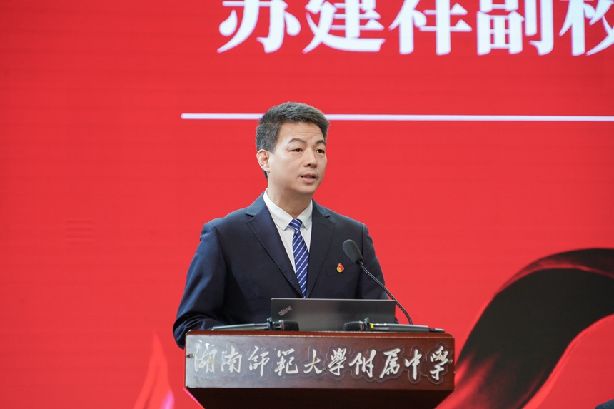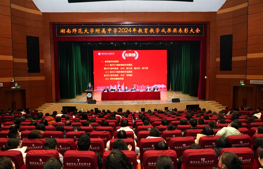 表彰大会环节,党委委员、副校长苏建祥宣读了《关于湖南师范大学附属中学2024年度教育教学成果奖的表彰决定》。