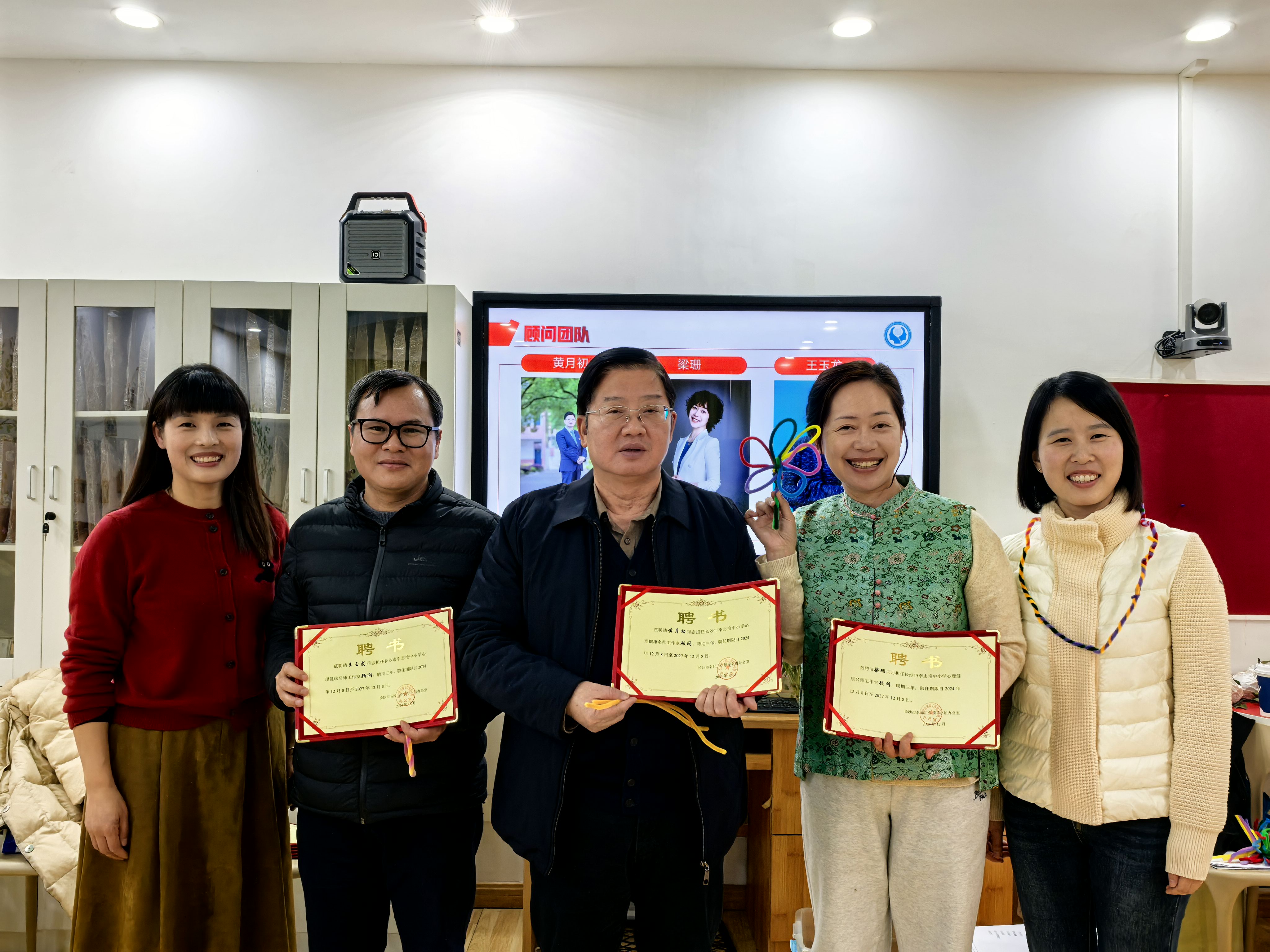 活动中,工作室为顾问和名师团队颁发了聘书。聘请湖南师大附中校长黄月初、长沙市教科院心理教研员梁珊、湖南师范大学心理学教授王玉龙为工作室顾问,聘请了湖南师大附中左小青、湖南师大附中博才实验中学申玉、长沙市第一中学胡艳、长沙市实验中学毛巍嶷、长沙市开福区清湘小学戴海华为工作室名师。