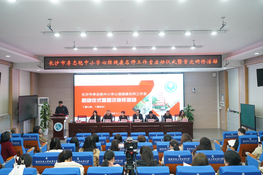 12 月 5 日,长沙市李志艳中小学心理健康名师工作室启动仪式暨首次研修活动在湖南师大附中图书馆学术报告厅举行。