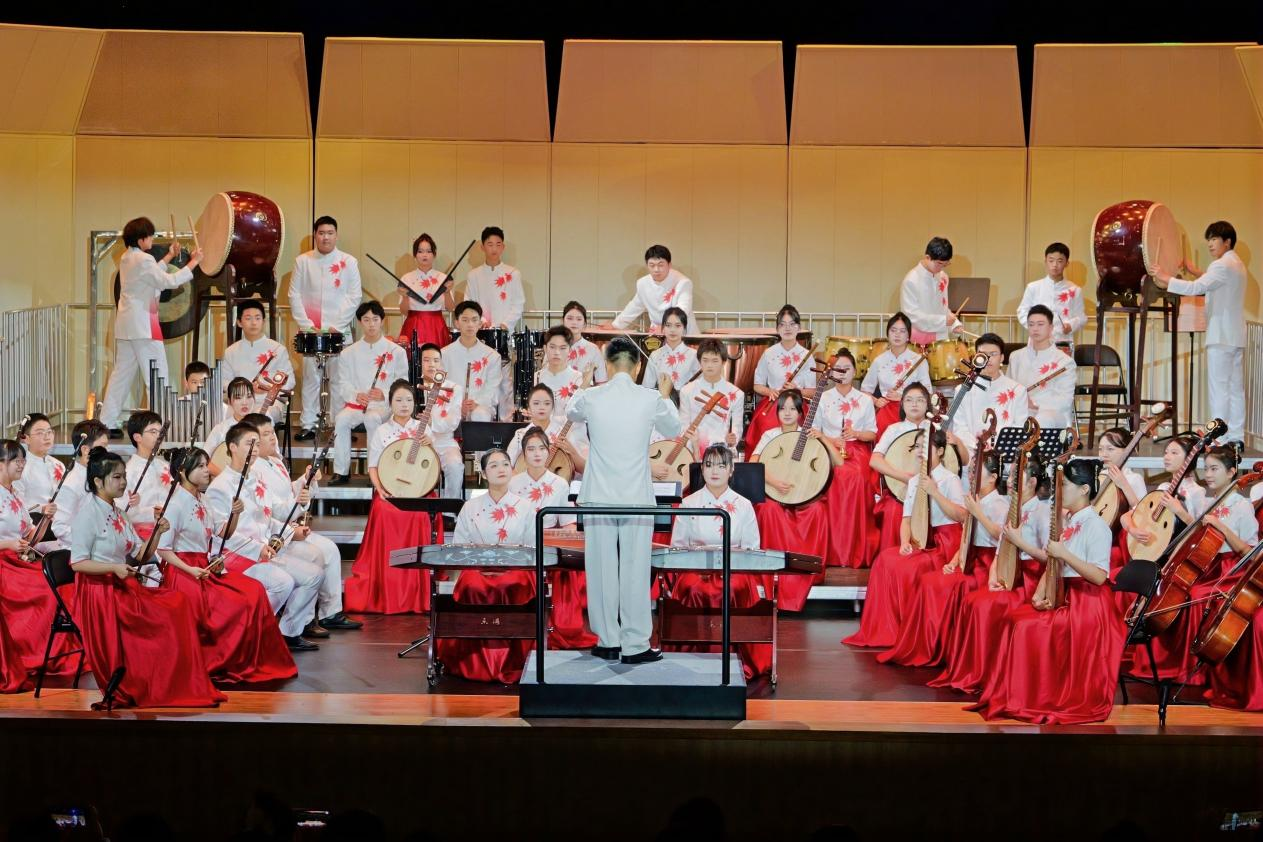 11月30日器乐专场中,我校红枫民乐团带来的《龙舞》以其独特的韵味和精湛的技艺,同样获得器乐专场一等奖。李鹏程、黄小波、刘傲芸三位老师指导的红枫民乐团,用音符编织了一幅幅生动的画面,如同龙腾盛世、气势磅礴,展现了中华文化的博大精深与独特魅力。