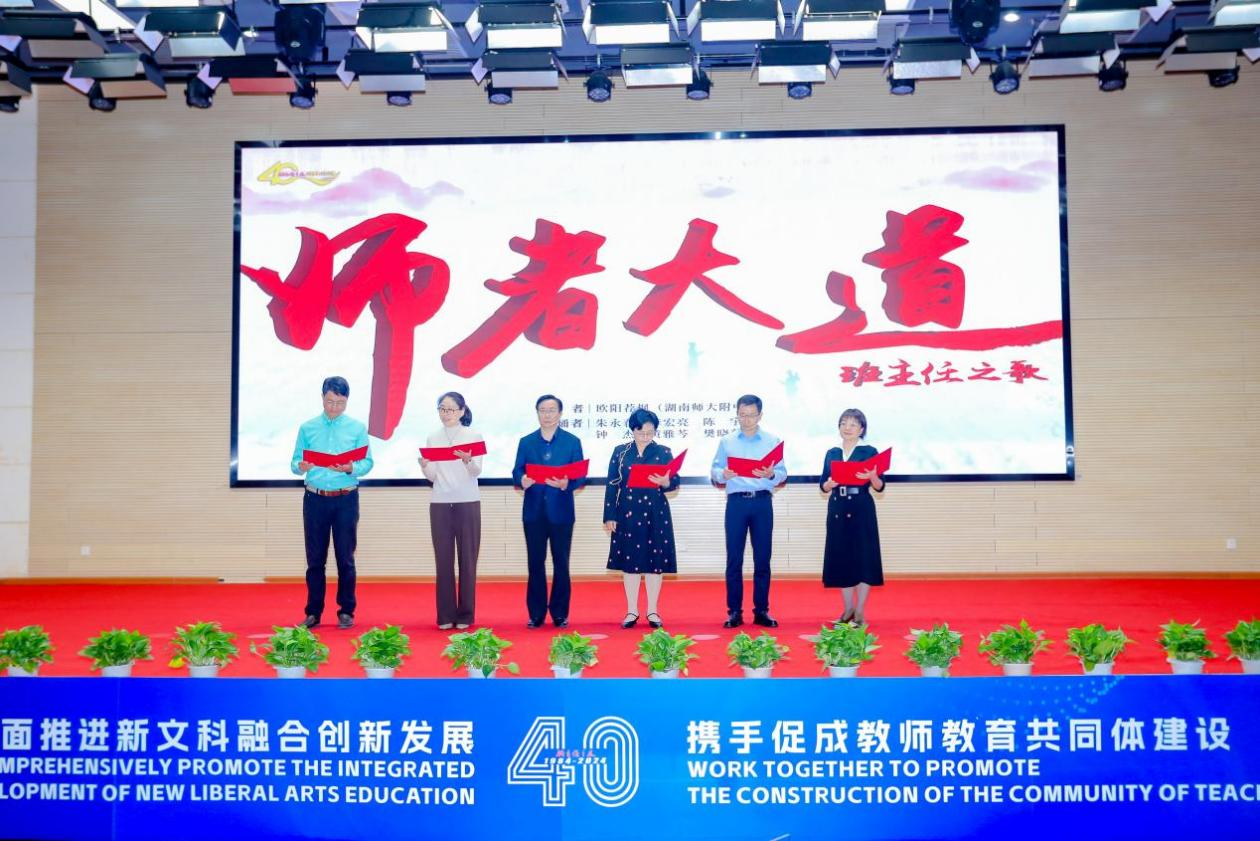 颁奖大会上,来自全国各地的优秀班主任代表陈宇、钟杰、朱永春、黄雅芩、李宏亮、樊晓薇等老师朗诵了我校欧阳荐枫老师的原创诗歌《师者大道——班主任之歌》,以此向李庾南等为代表的老一辈教育工作者和所有奋斗在一线的班主任们致敬。诗歌所体现的教育情怀、教育思考、教育追求深深打动了所有参会者。