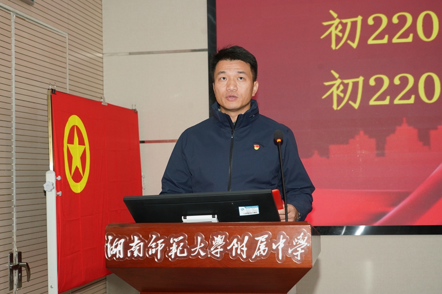 11月7日,我校九年级“童心向党 青春启航”离队建团仪式在惟一大讲堂举行。党委书记谢永红,党委委员、副校长廖强出席活动。活动由大队辅导员张冰洁主持。