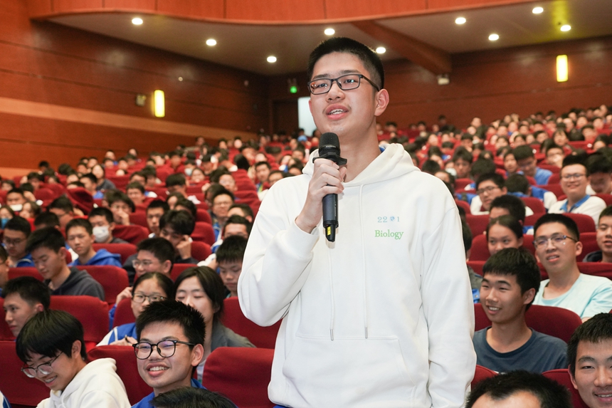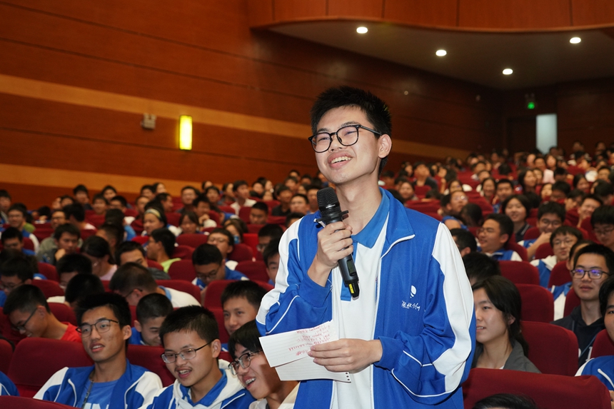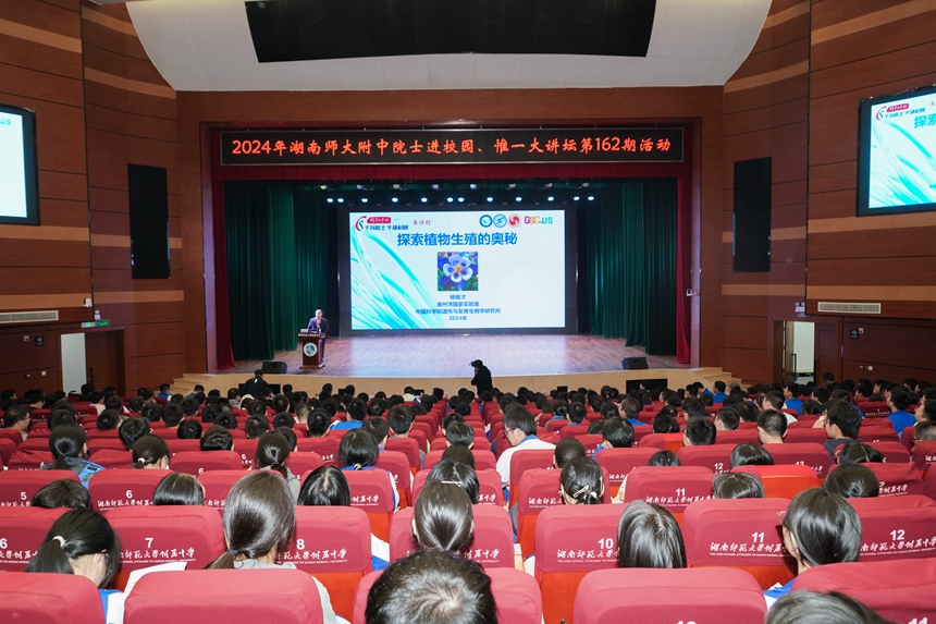 在学生活动中心主会场,杨维才院士以《植物生殖的奥秘》为主题,将蕴含着无限生命奥秘的植物学知识,深入浅出地呈现在了学生们的面前。在杨维才院士的引导下,学生们不仅揭开了被子植物繁衍的谜团,深入认识了遗传密码和中心法则,更在与院士的互动交流过程中,激发了内心深处探秘生命密码的科学兴趣、树立了投身科学研究的宏伟志向。