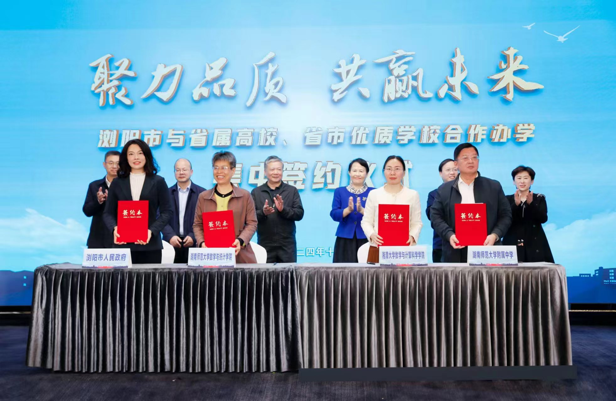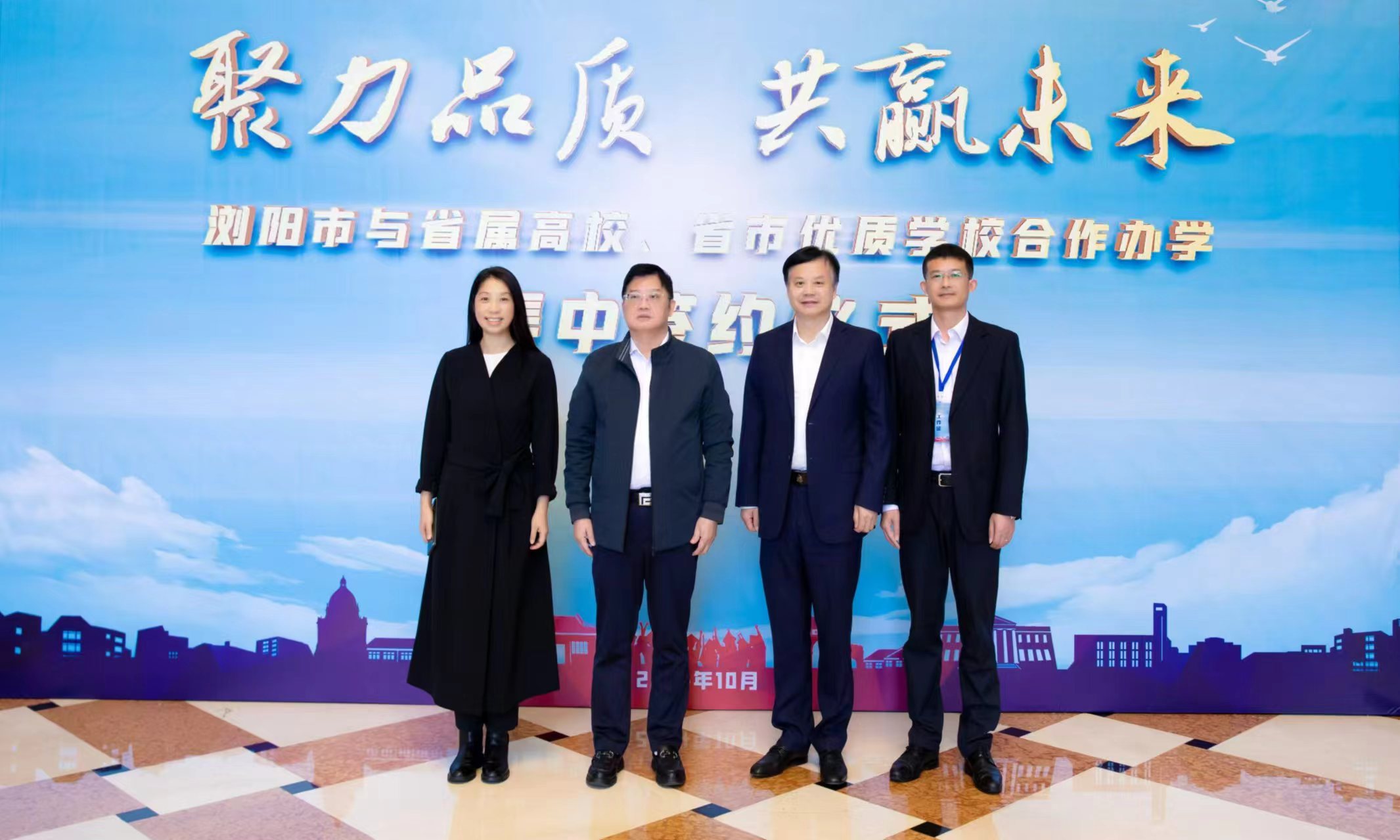10月29日,浏阳市与省属高校及省市优质学校合作办学集中签约仪式在浏阳市隆重举行。我校与浏阳市教育局签署了合作办学协议,双方就拔尖创新人才早期培养达成了合作共识。我校党委书记谢永红、校长黄月初参加了签约仪式。黄月初代表学校与浏阳市教育局签署了协议。