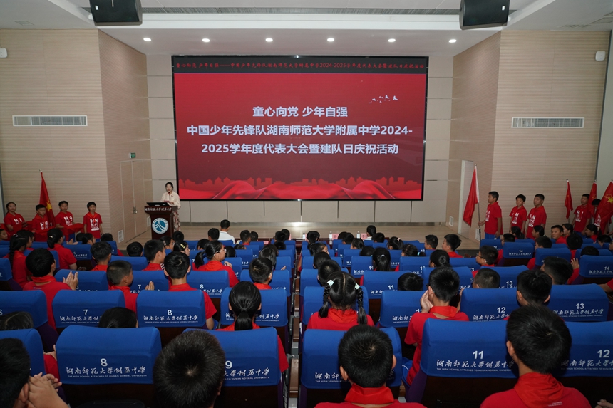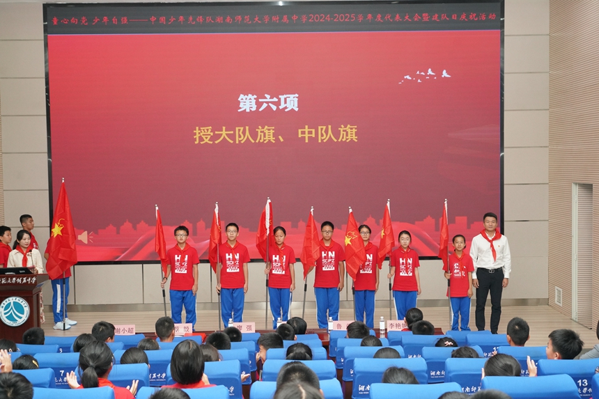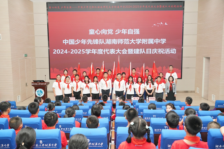 10月11日下午3点,为庆祝中国少年先锋队建队75周年,学校举行了“童心向党 少年自强”中国少年先锋队湖南师范大学附属中学2024-2025学年度代表大会暨建队日庆祝活动。