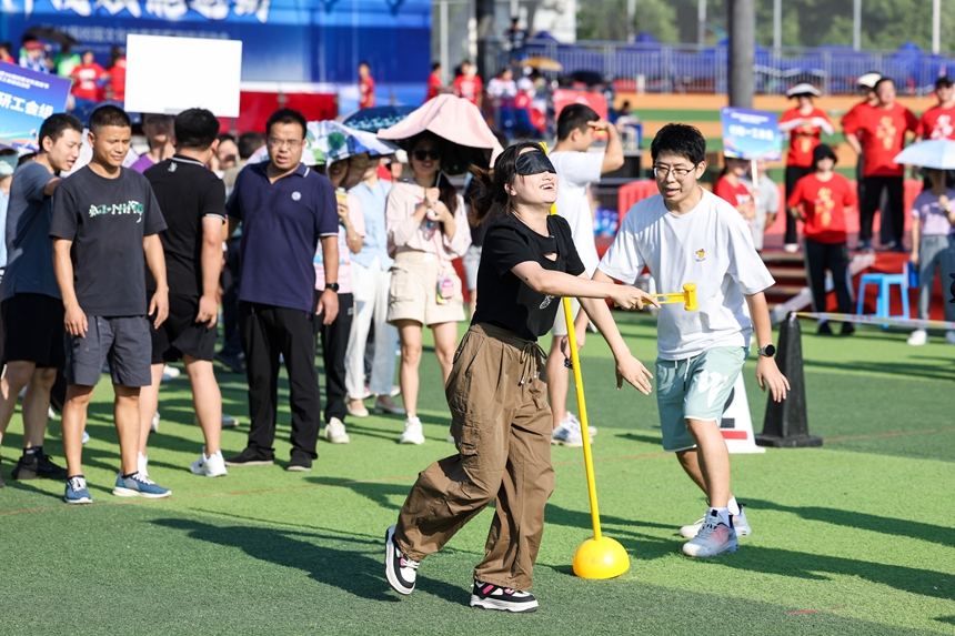 为增强教职工的凝聚力与团队合作精神,缓解工作压力、增强身心健康,我校于9月30日上午举办了教职工趣味运动会。本次运动会设有五个精彩项目,包括“蒙眼敲锣”、“与时俱进”、“闪电纵队”、“超级障碍赛”和“毽球比赛”五个项目,教职工们全员参与、全力拼搏、其乐融融,展现了我校教职工的活力与拼搏精神。联合教研工会组、行政一工会组、行政二工会组分别获得冠军、亚军、季军。
