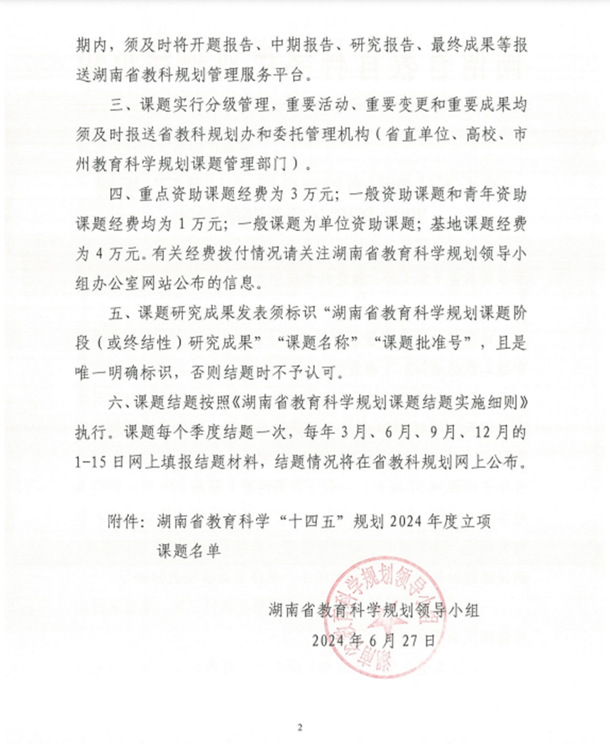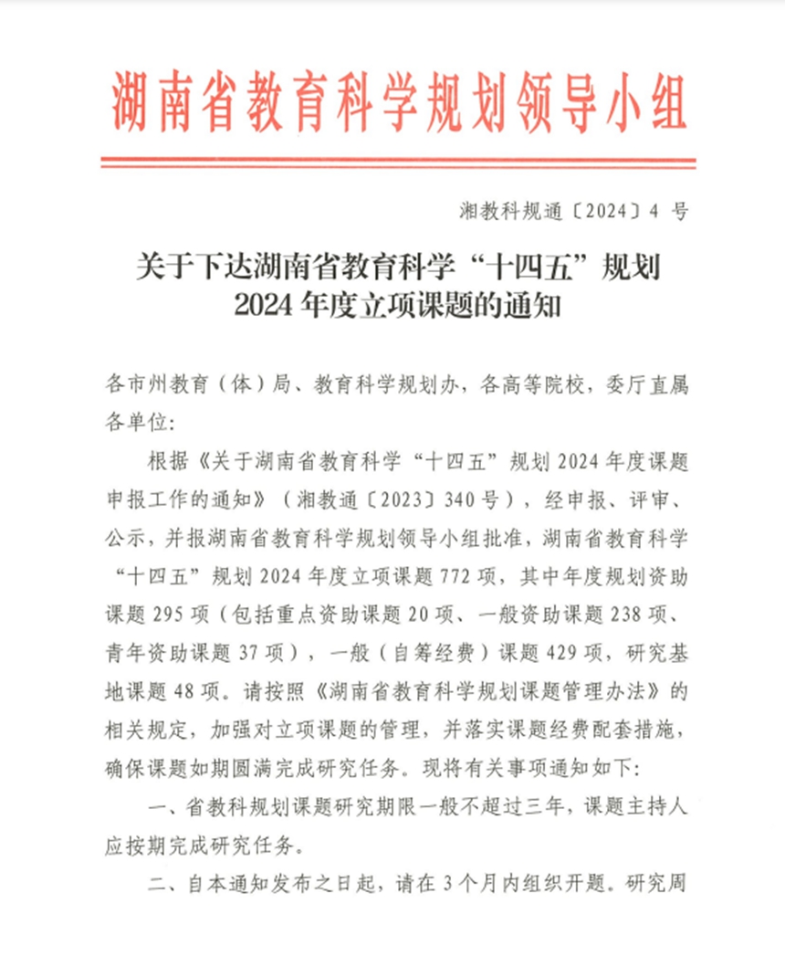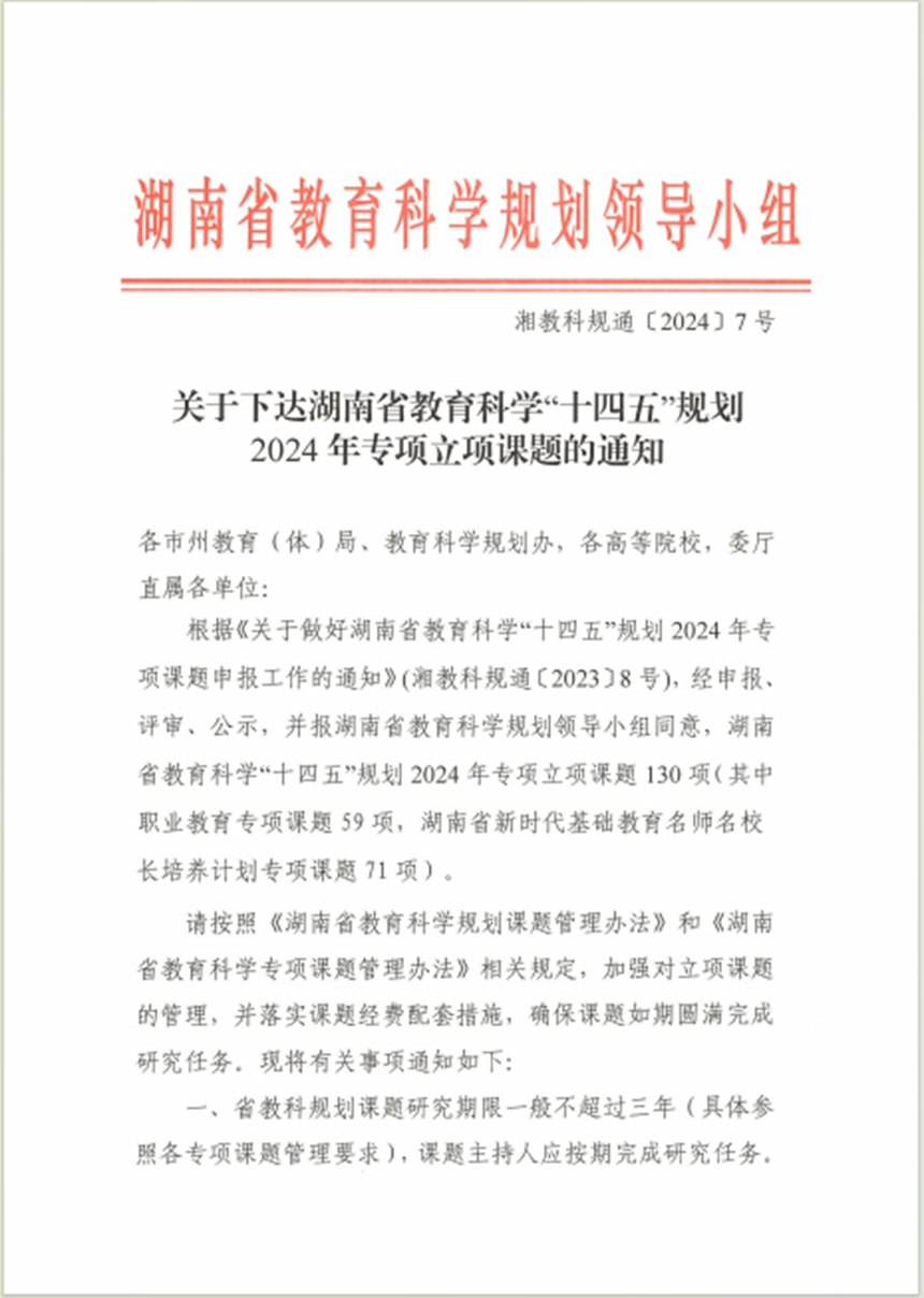我校六项课题获准立项为湖南省教育科学“十四五”2024年度规划课题及专项课题