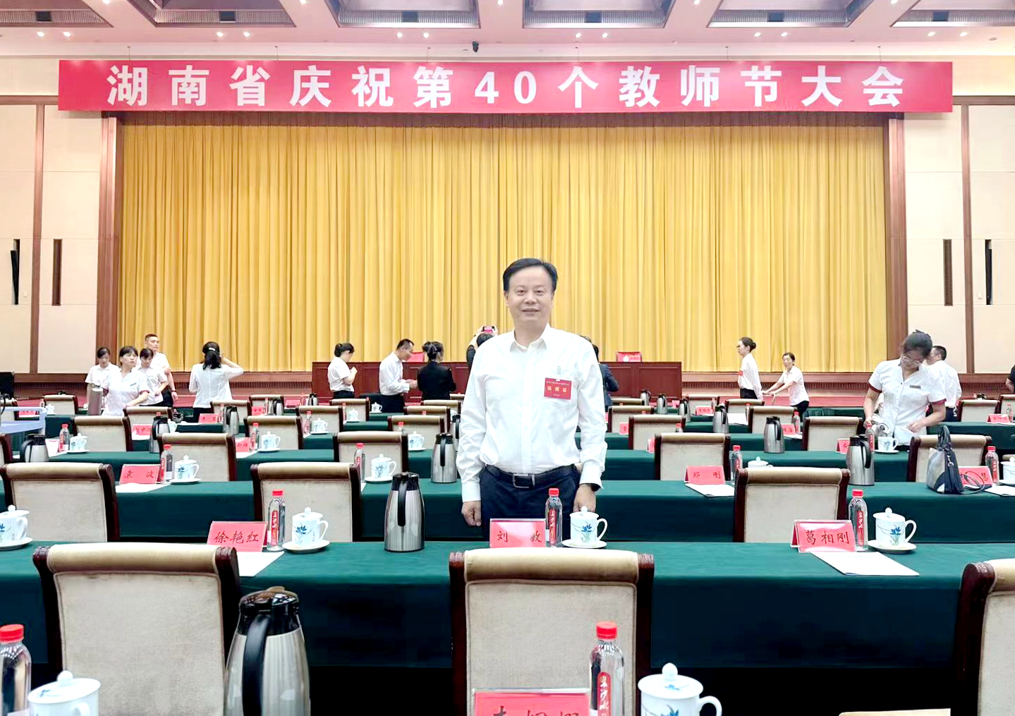 9月4日,湖南省庆祝第40个教师节大会在长沙举行。会前,省委书记沈晓明,省委副书记、省长毛伟明会见了优秀教师代表。我校党委书记、全国五一劳动奖章获得者谢永红参会。