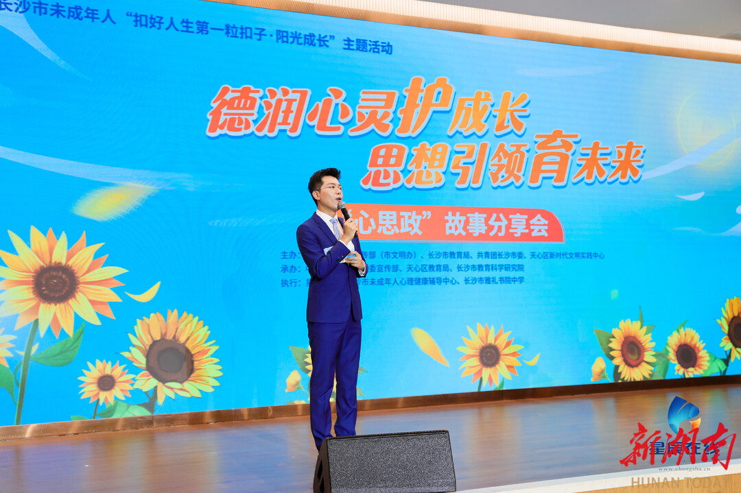 5月27日,长沙市未成年人“扣好人生第一粒扣子·阳光成长”主题活动之“德润心灵护成长 思想引领育未来”——“心思政”故事分享会在长沙市天心区雅礼书院中学举行。省委宣传部副部长、省文明办主任赵成新,长沙市委常委、市委宣传部部长、市委教育工作领导小组组长陈澎,市委宣传部副部长、市文明办主任王志勇等出席活动。