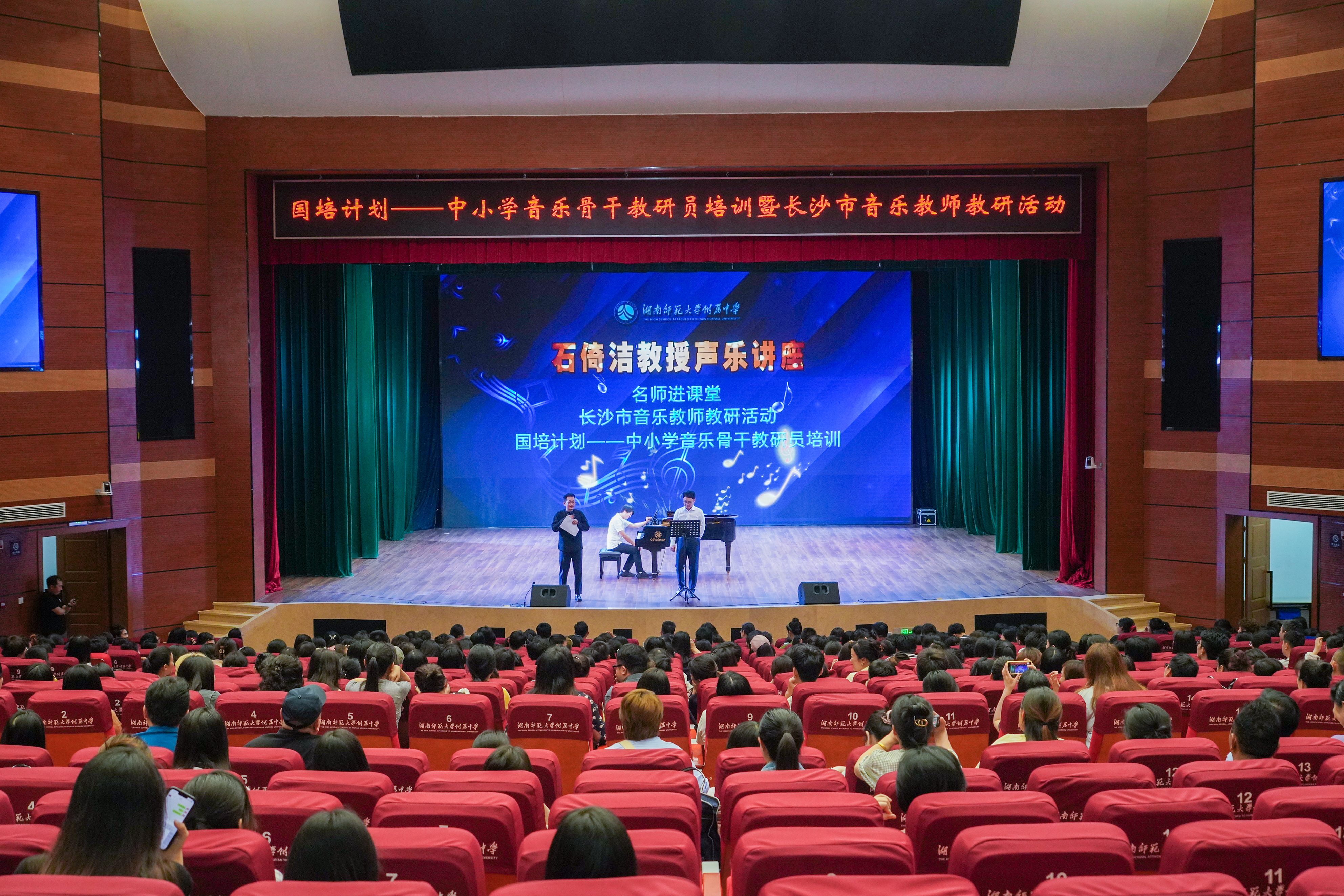 5月22日上午,石倚洁教授声乐讲座暨名师进课堂、长沙市音乐教师教研活动、国培计划——中小学音乐骨干教研员培训活动在我校举行。