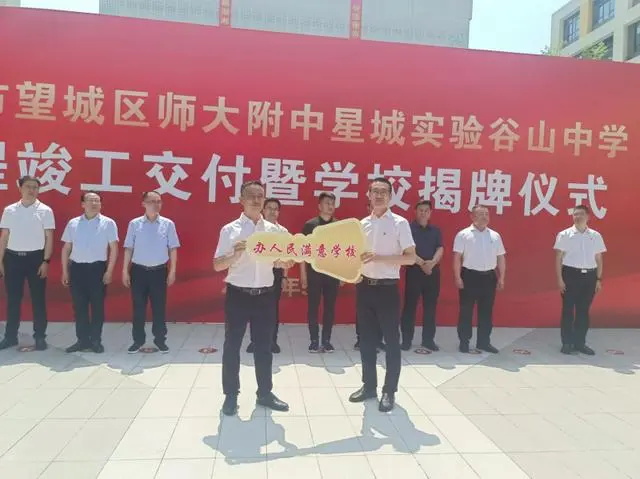 活动现场,望城城发集团负责人把“金钥匙”移交给谷山中学校长梁平,并举行了谷山中学揭牌仪式。据介绍,谷山中学是一所极具现代化气息的花园式学校。在硬件方面,设计理念新、设施标准高、校园环境美,学校建筑以黄色、绿色为主基调,体现了一种阳光、活泼的校园生态环境;在软件上,谷山中学领导班子已经就位,接下来,望城区教育局将通过招聘、选调等方式组建一支优质教师队伍,统筹抓好教师培训培养工作。