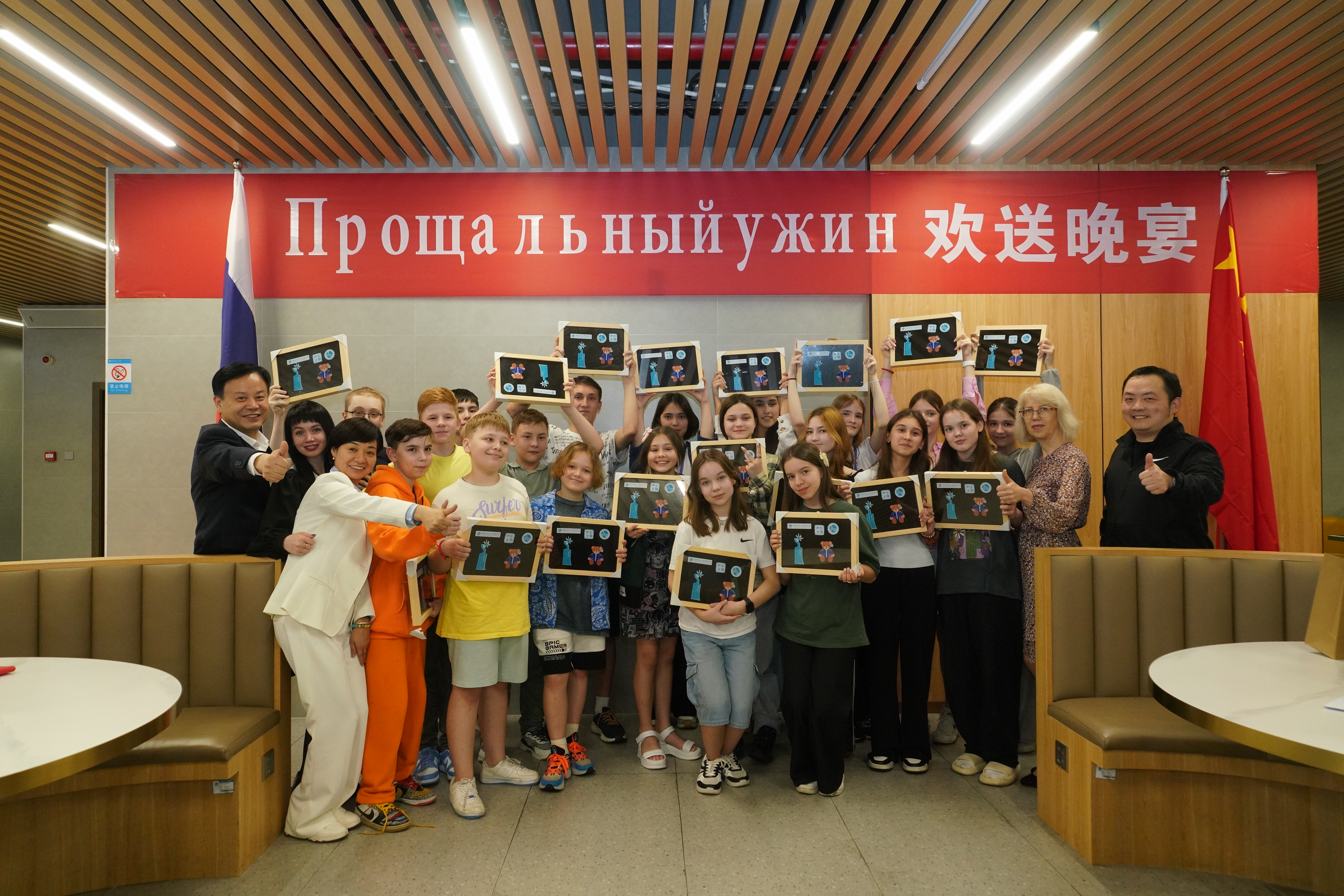 在最后的欢送会上,谢永红、黄月初向喀山市第183中学的老师和同学们分别送上了满怀心意和美好祝愿的具有附中特色的纪念礼物。两校学生代表作分享发言,深情表达了他们对于彼此的感谢和对这段经历的珍视。在这最后的团聚时光,两校学生都献上了热情洋溢的歌曲演唱。欢快的歌声悠扬,灿烂的笑容、全场的热烈回应是青春最美好的模样。