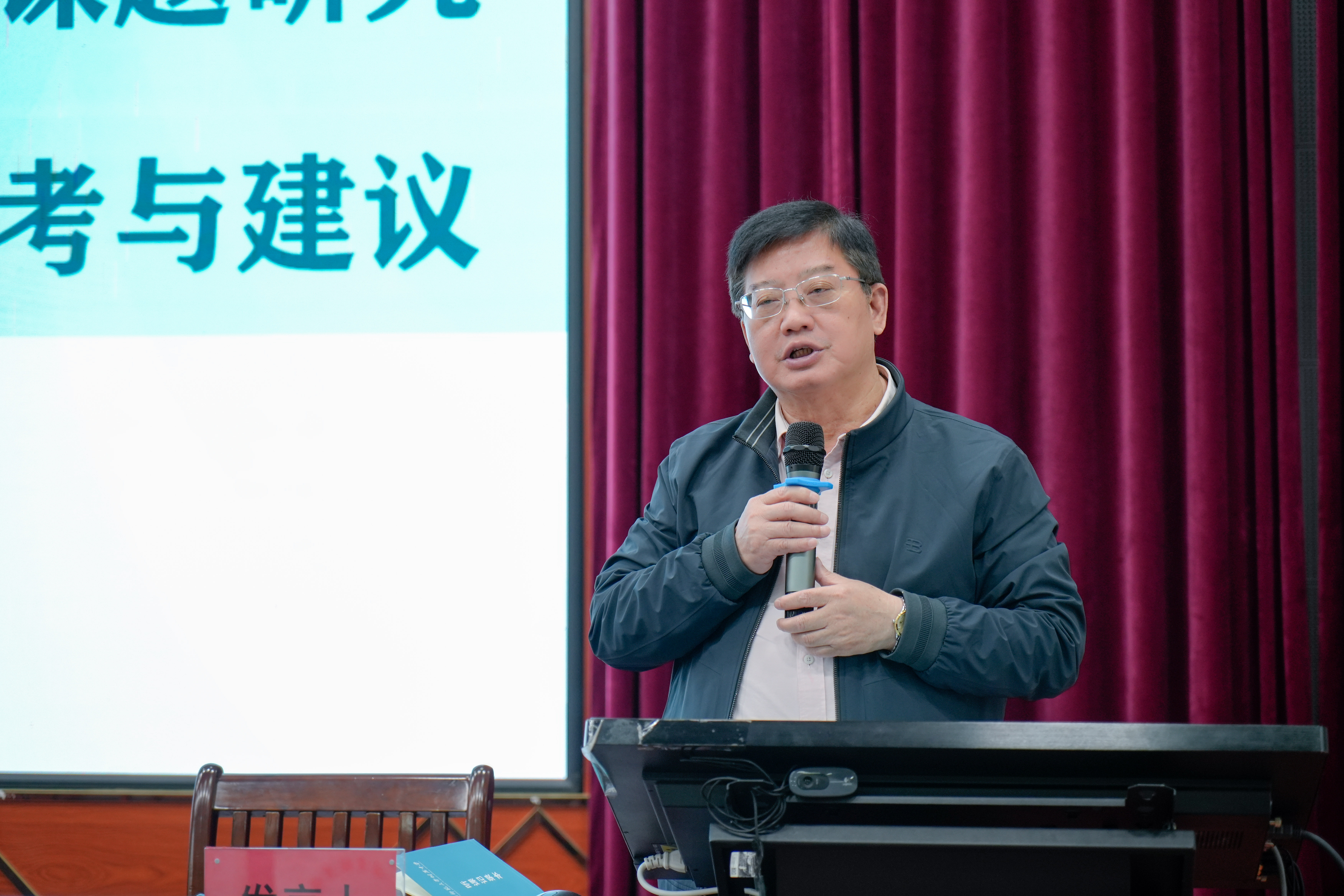 黄雅芩就所主持的湖南省教育科学“十四五”规划2023年度基地专项课题《新时代普通高中课程思政背景下学科融通育人的校本研究》(课题批准号XJK23AJD037)进行了汇报。指出该课题是基于“唯分数论”的教育价值导向异化、“知识本位”下教育内涵的狭隘化、“分科教学”下教育内容模式壁垒化等基础教育的现实困境而提出的。